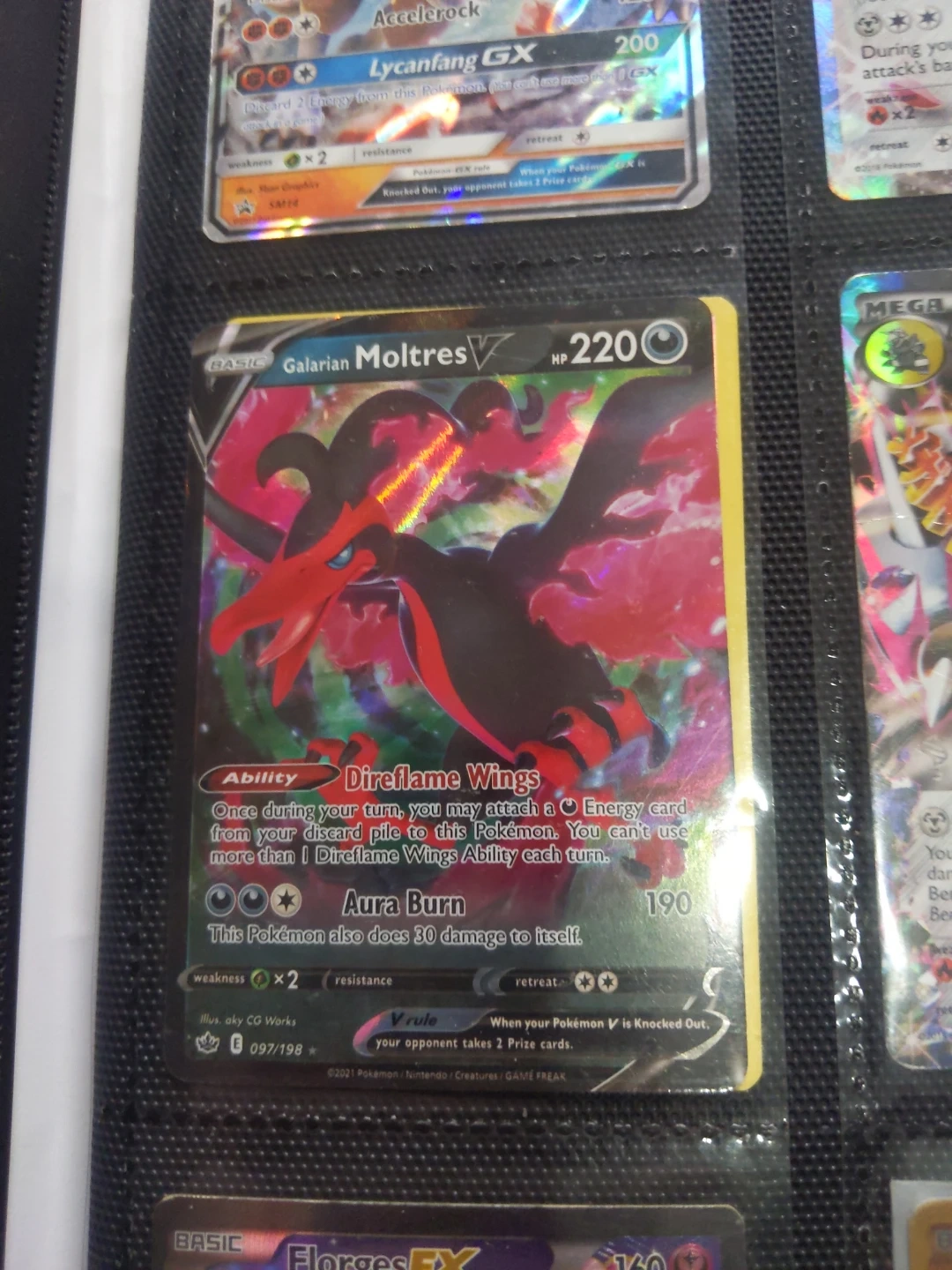 A collection of various Pokemon cards including Magearna EX, Galarian Moltres V, Tapu Bulu GX, and others.