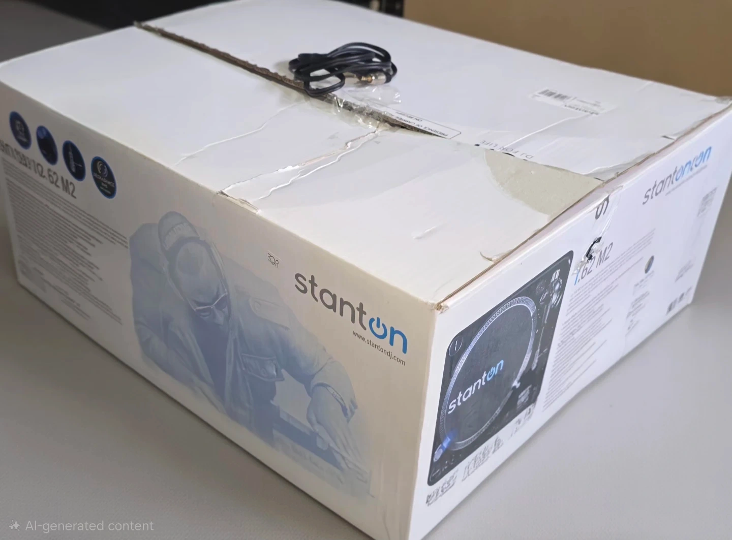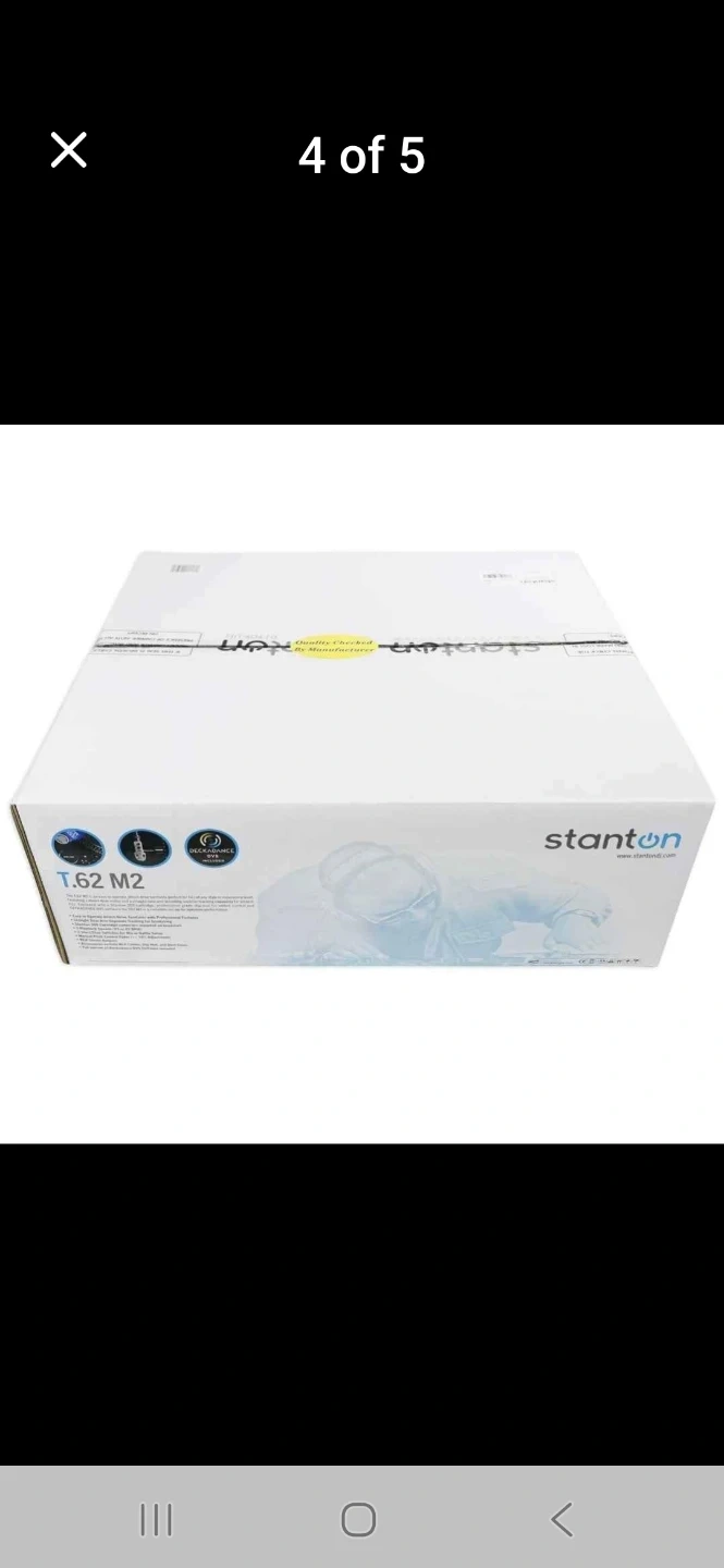 Stanton T.62 M2 Direct Drive DJ turntable with original box and power adapter includes speaker RCA cables. It's a professional model equipped for scratching. It includes RCA cables and the Deckadance DVS software.