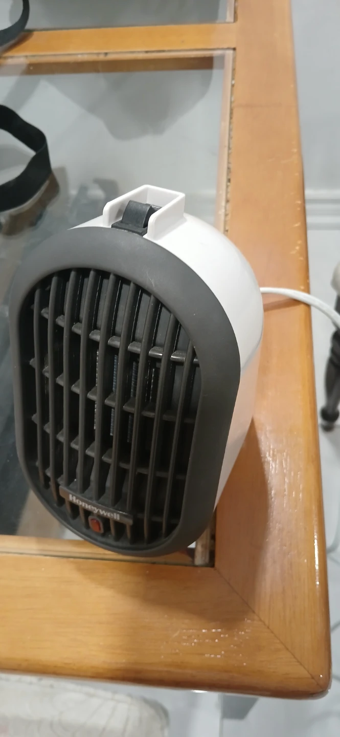 This is a Honeywell personal mini heater. It has three settings: off, low, and high. Compact size for easy placement.