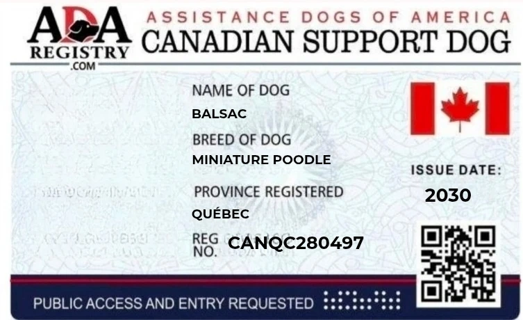 Carte d'identité de chien d'assistance