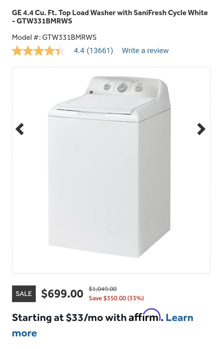 GE Washer. Used well. Makes some sound when running in full capacity. Top load.