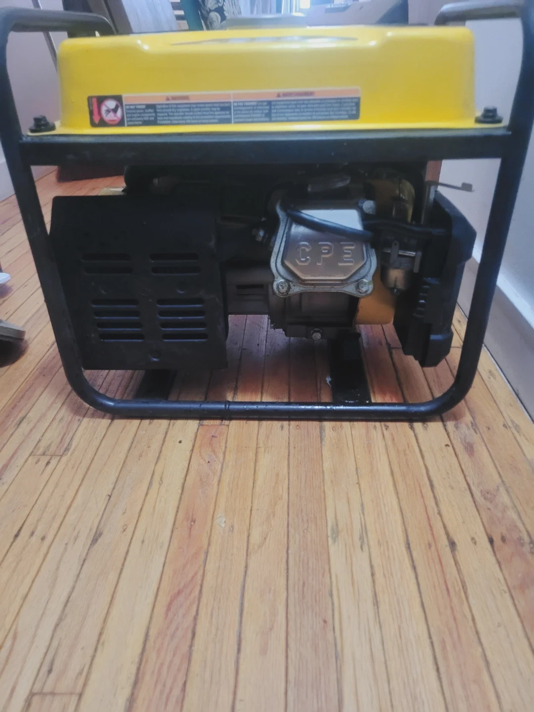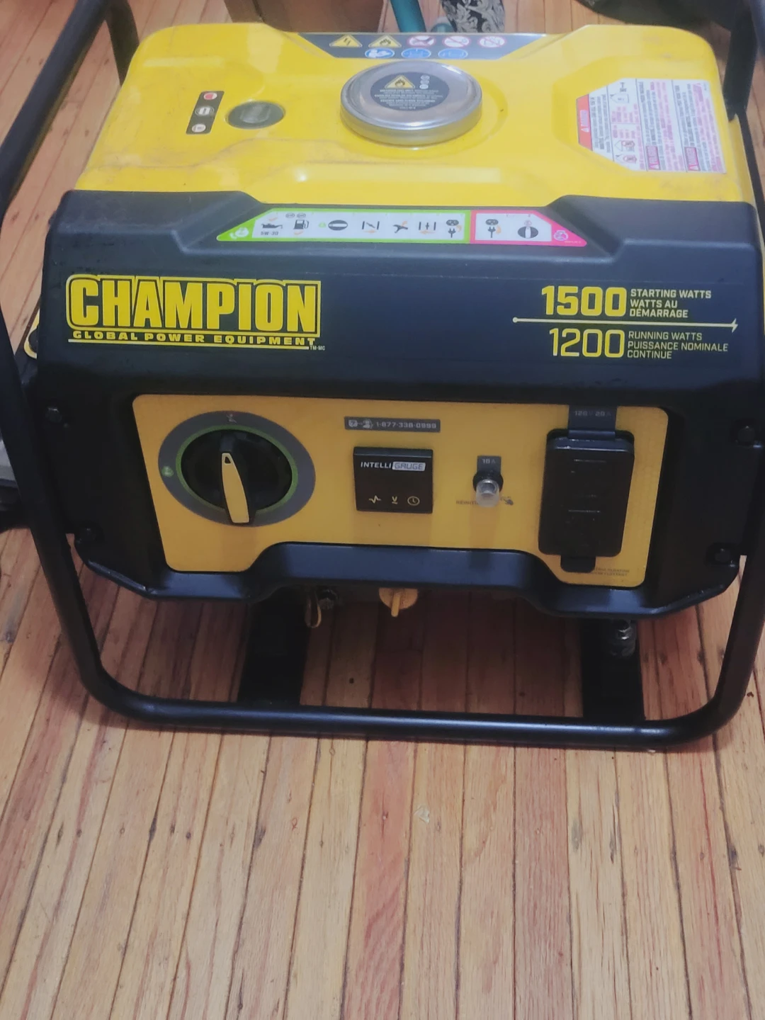 Champion portable generator with 1500 starting watts and 1200 running watts. This unit is yellow and black with a metal frame.