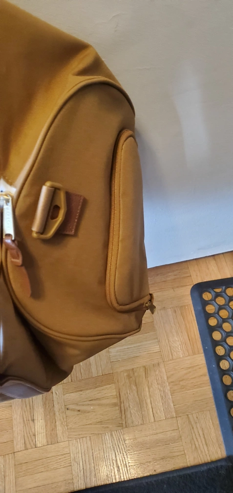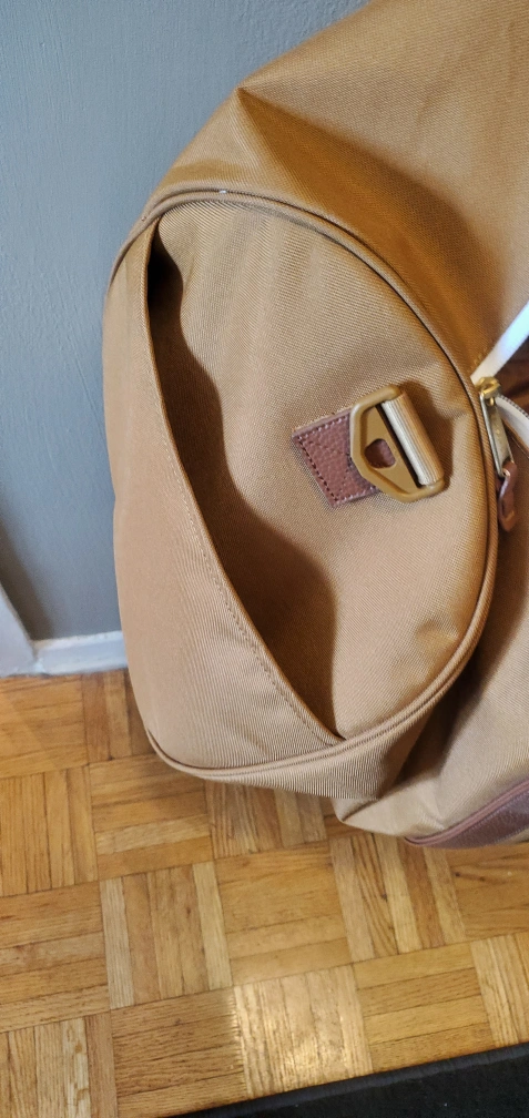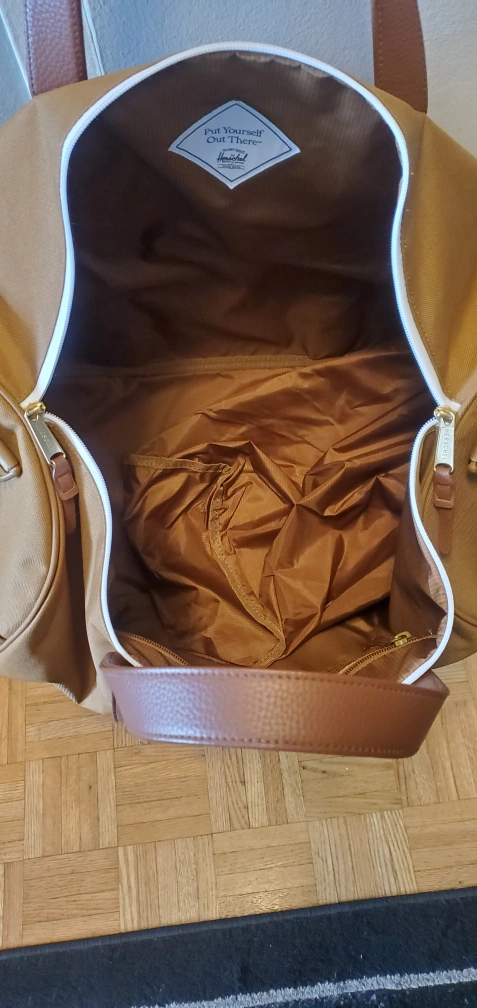 This is a Herschel duffle bag in brown. It's in great condition and ready for your next trip or gym visit! It features a spacious interior and sturdy construction.