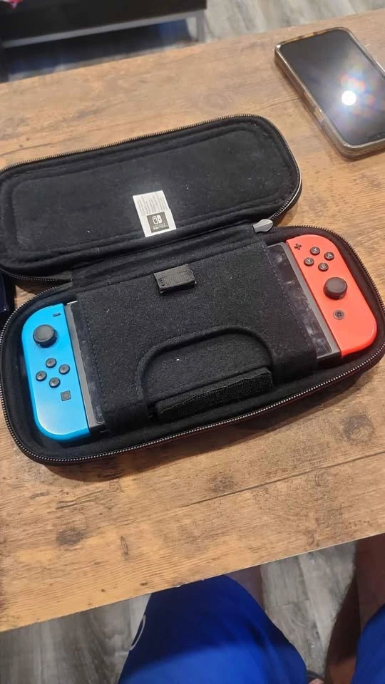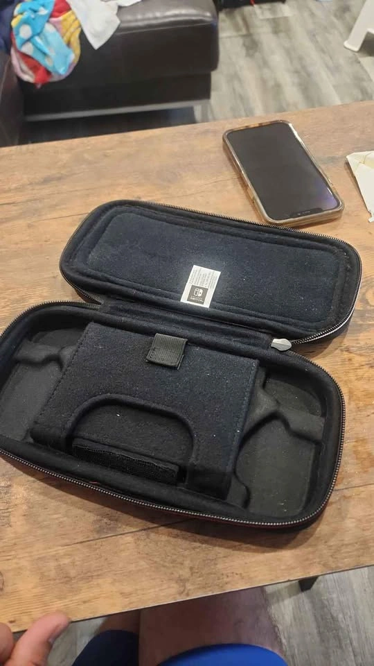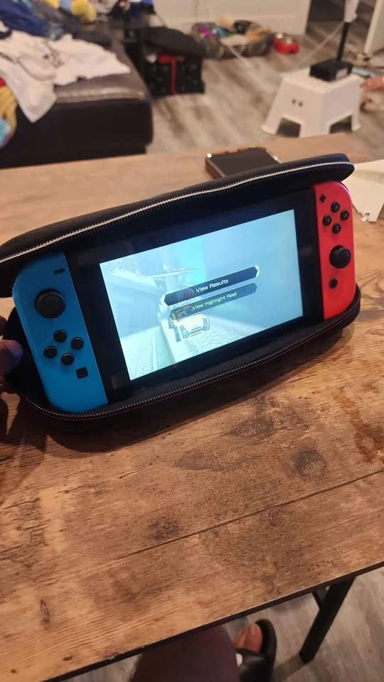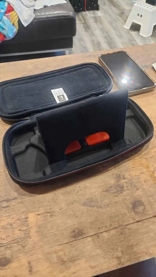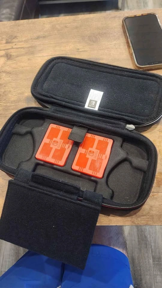 Mario Kart Nintendo Switch case includes two game holders (holds total 8 games) and a stand to hold the Switch upright.