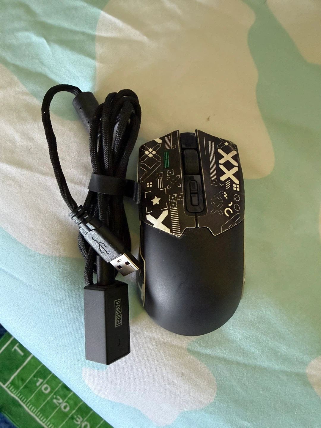 This is the EPOMAKER Click wireless gaming mouse. It's black and connects via 2.4Ghz. The mouse offers adjustable DPI up to 42,000. It has an 8K polling rate and a 500mAh battery.