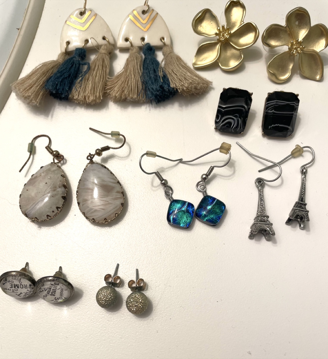 A variety of earrings. Can send up close pictures of individual ones you’re interested in.