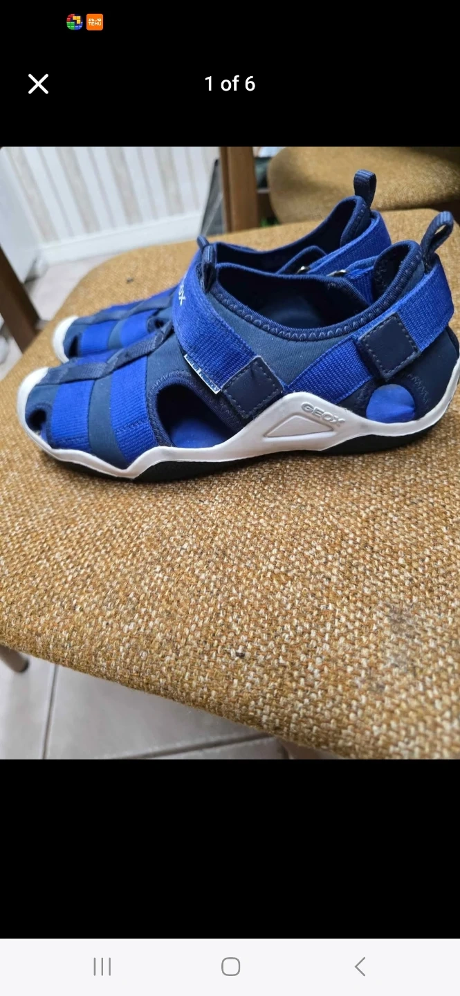Geox kids' sandals in a bright blue colour. Features adjustable velcro straps for a secure fit. Size is 35. These are great for active little ones exploring outdoors!