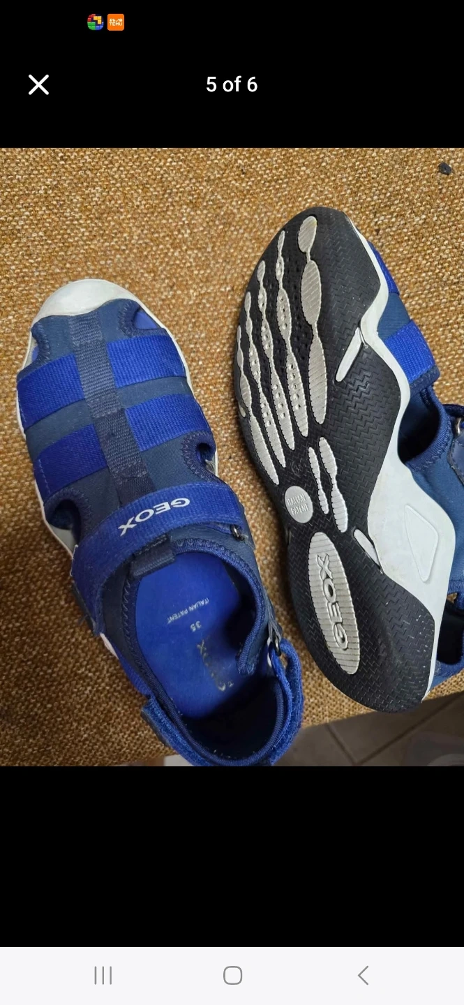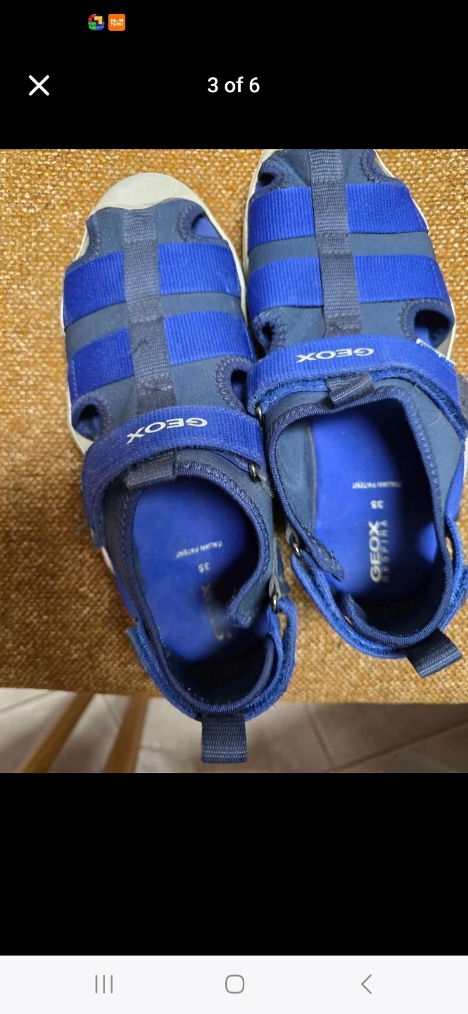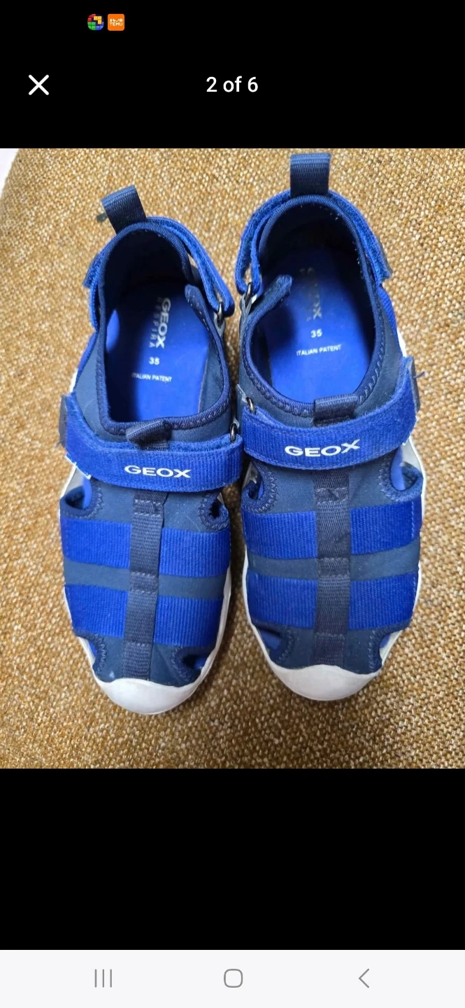 Geox kids' sandals in a bright blue colour. Features adjustable velcro straps for a secure fit. Size is 35. These are great for active little ones exploring outdoors!