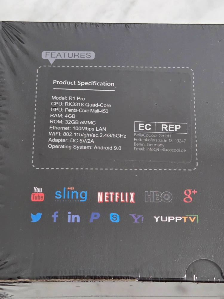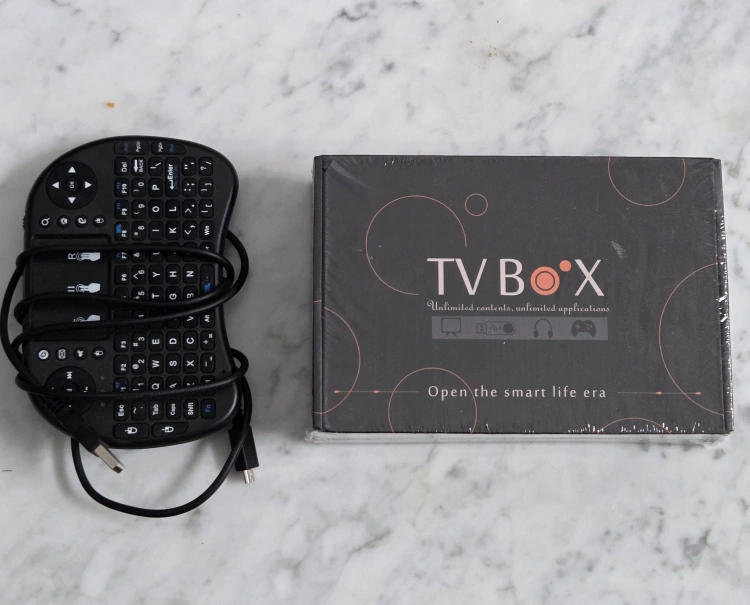 Android TV Box 11.0 4GB DDR 32GB Smart TV Box. Includes wireless keyboard. Features RK3318 Quad-Core CPU, Penta-Core Mali-450 GPU, 4GB RAM, 32GB ROM. Supports Netflix, YouTube, Sling, HBO and any app on Google Play Store