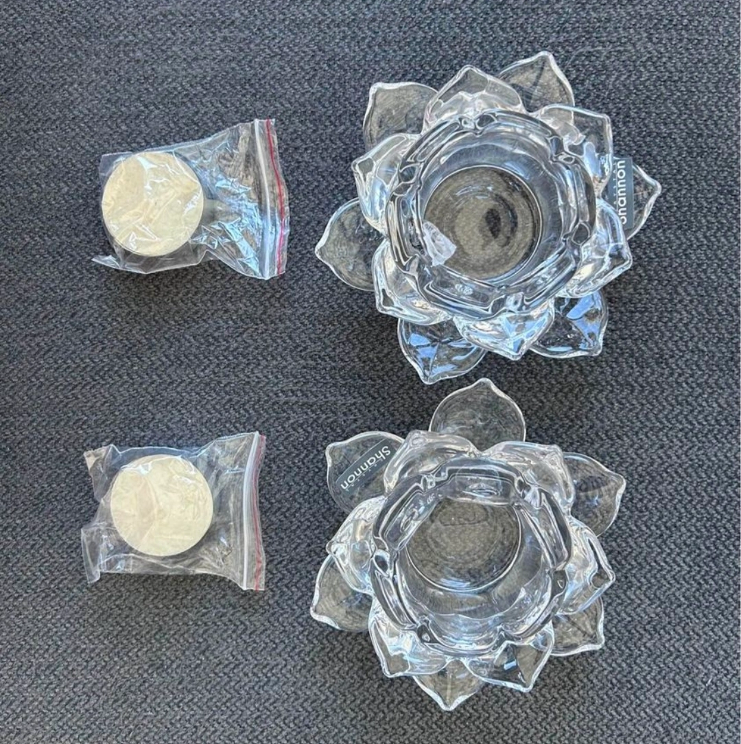 - Candle holders - Lotus crystal votive pair (2 tealight candles included - NEW, UNUSED)