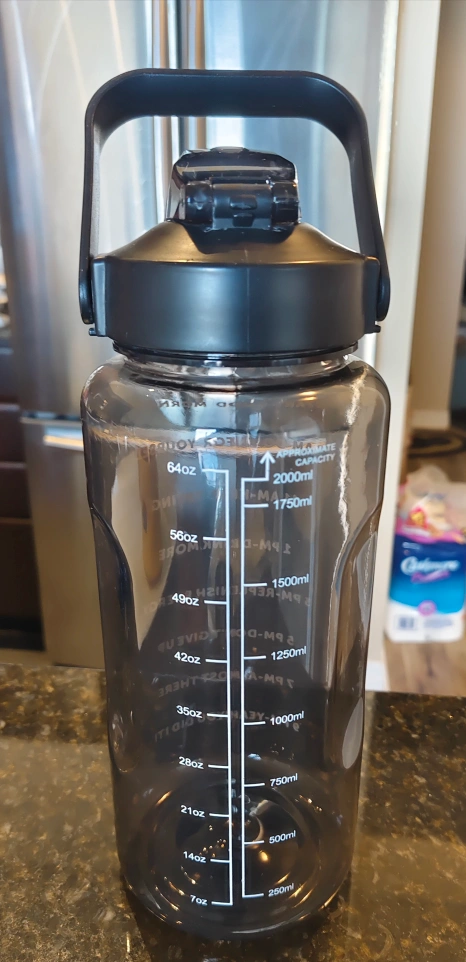 - Water bottle (black - large size - 2 liter capacity - BPA-free - thick and durable material - perfect for gym, work or travel - LIKE NEW)