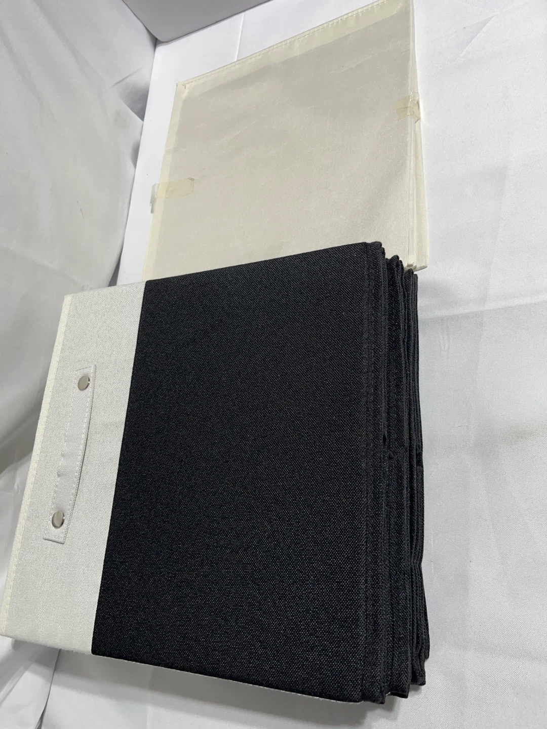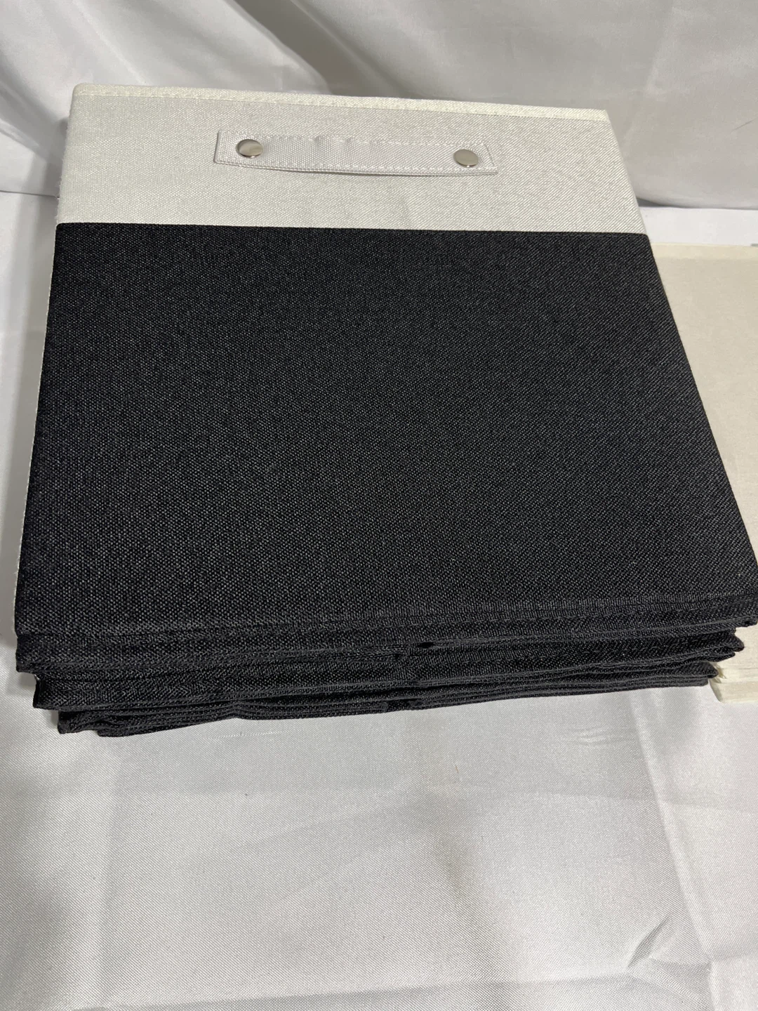 Selling a set of 6 storage bins in great condition! These are perfect for organizing your closet, shelves, or any space that needs a little tidying up. The bins are a stylish black and white colour, and they come with lids to keep your items dust-free. They're a good size for storing clothes, toys, or other household items.