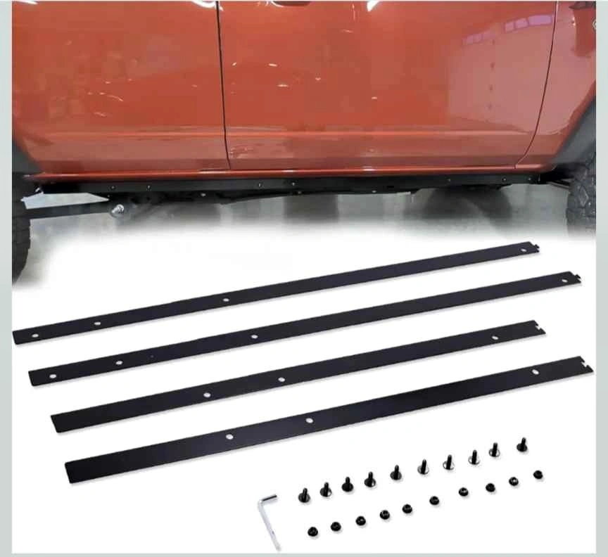 Brand new pinch weld covers for 4-door Ford Broncos. These fit [hidden information]th gen models perfectly. They have a black powder coating for rust and corrosion resistance. All necessary hardware for installation is included. Please note these are not for 2-door Broncos.
