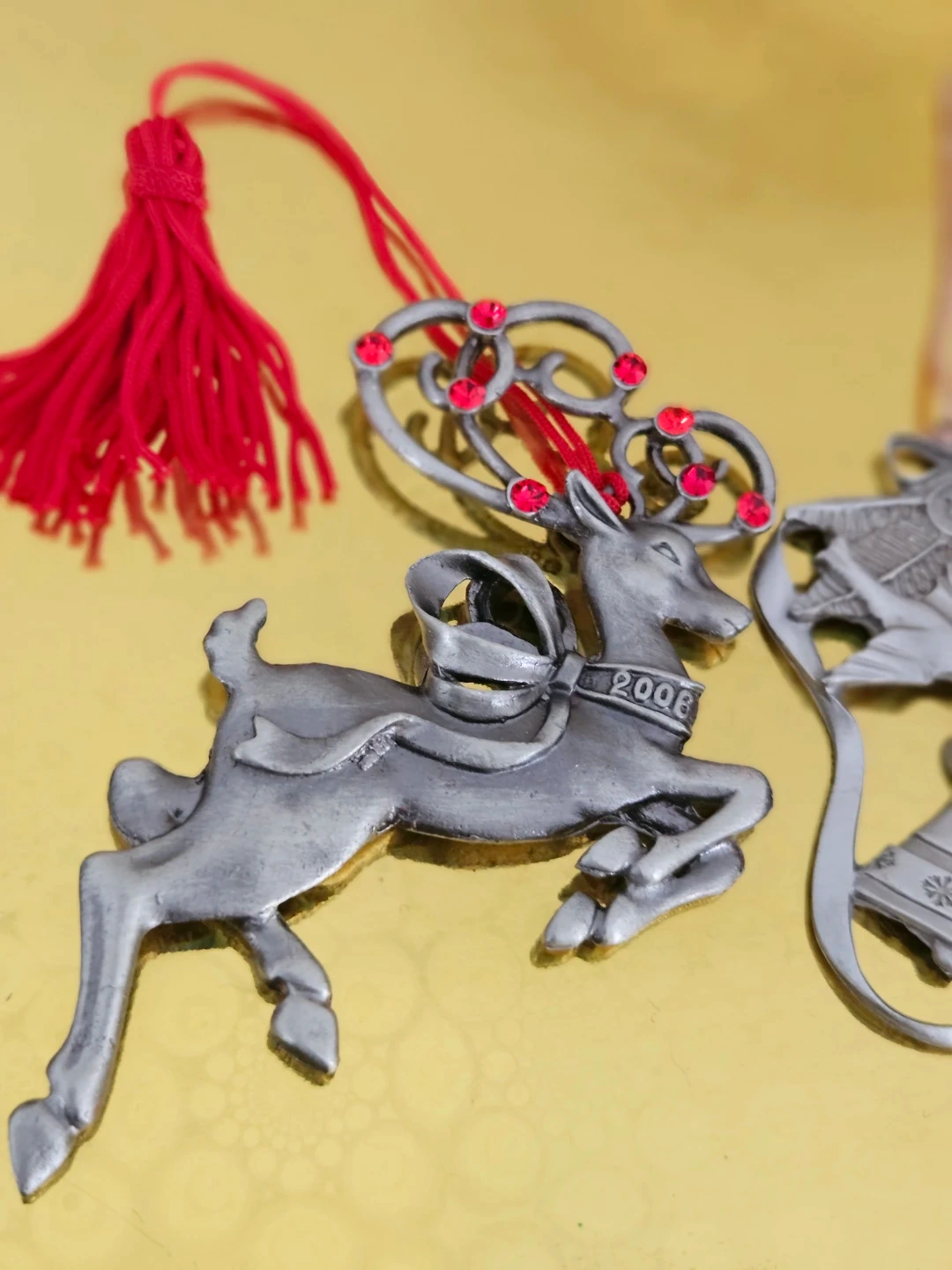 These are popular vintage sets from the 1980s and beyond. Sold in sets of three. There are four sets in total. They offer a vintage, nostalgic feel, making them popular for Christmas decorating and collecting. $30/set, 4 sets total, sold together or separately.