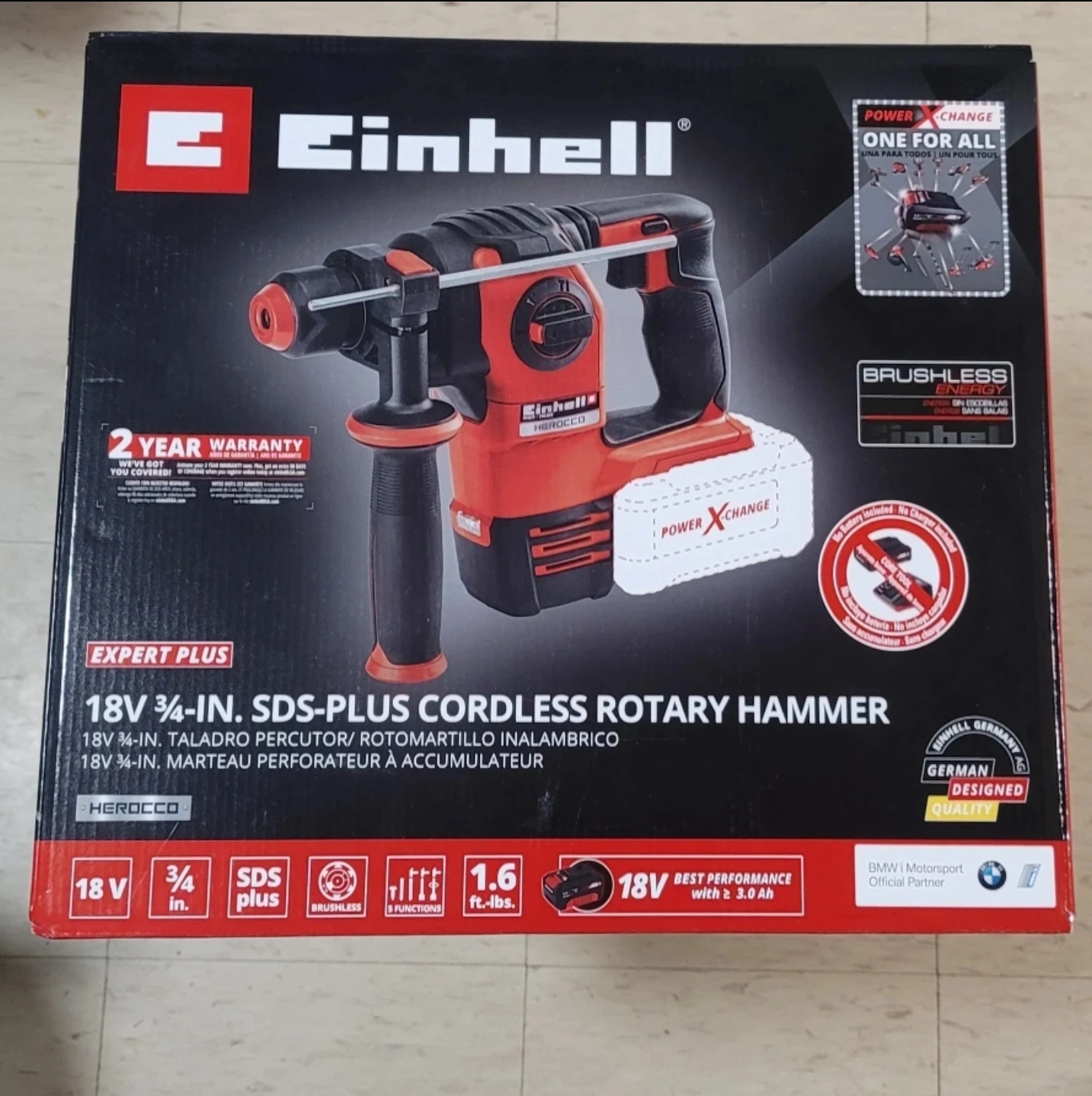 Selling a brand new Einhell 18V 3/4-in. SDS-Plus Cordless Rotary Hammer. This Expert Plus series tool features a brushless motor and 4 functions. It delivers 1.6 ft-lbs of impact energy and is part of the Power X-Change system. Includes the original box (slight wear on the box but sealed). Retails for $215 on amazon at the moment.