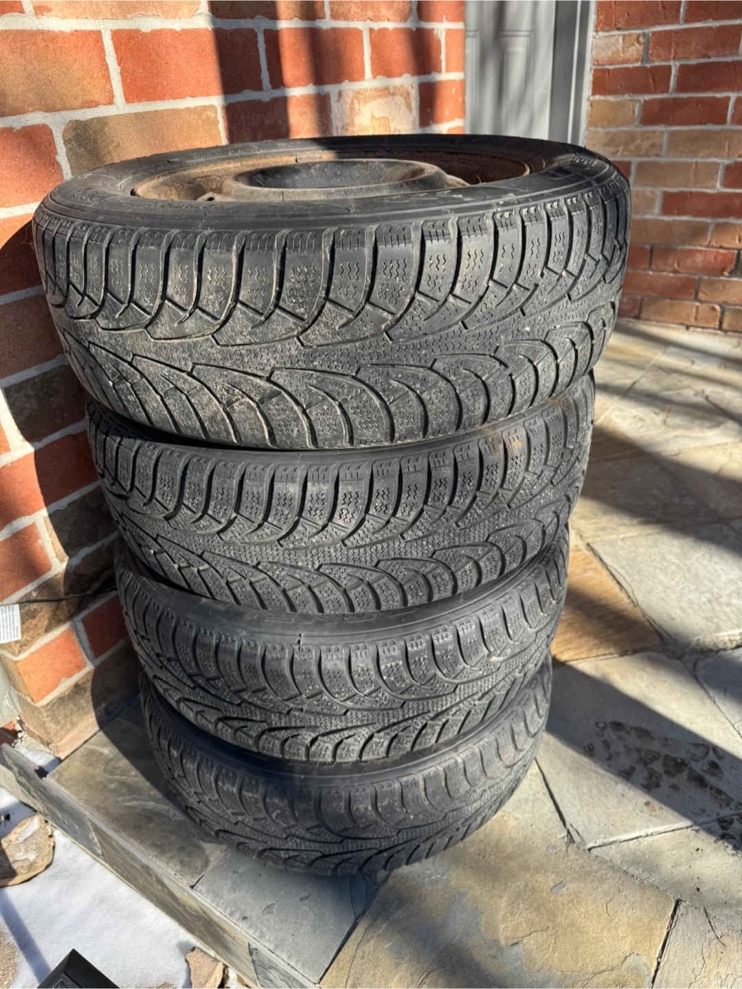 Used Winter tires available for sale. Already on rims and bolt pattern is 4✖️100. Wheel size is 14 inch fits with many small cars of every brand like yaris, corolla , mazda, honda fit , kia rio , etc. Listed for quick sale