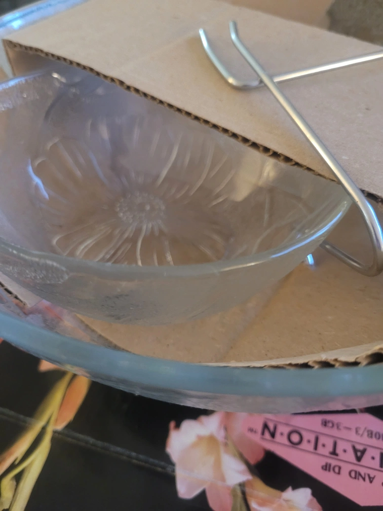 Selling a brand new Carnation chip and dip bowl set, still in its original box! This set features a beautiful floral design and is perfect for serving snacks at parties or gatherings. The model number is VS-10B/3-3GB. It's a stylish and functional addition to any kitchen or dining area