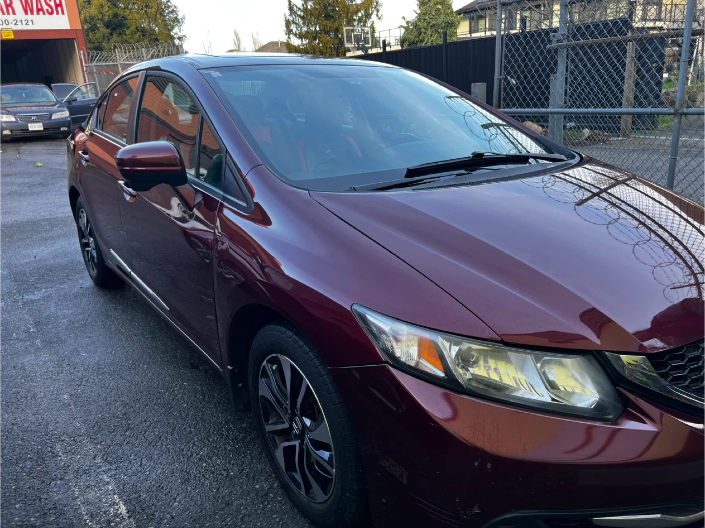 A burgundy Honda Civic sedan with 189,368 km. It's a reliable vehicle perfect for daily commutes. Features include a clean interior and a smooth ride.