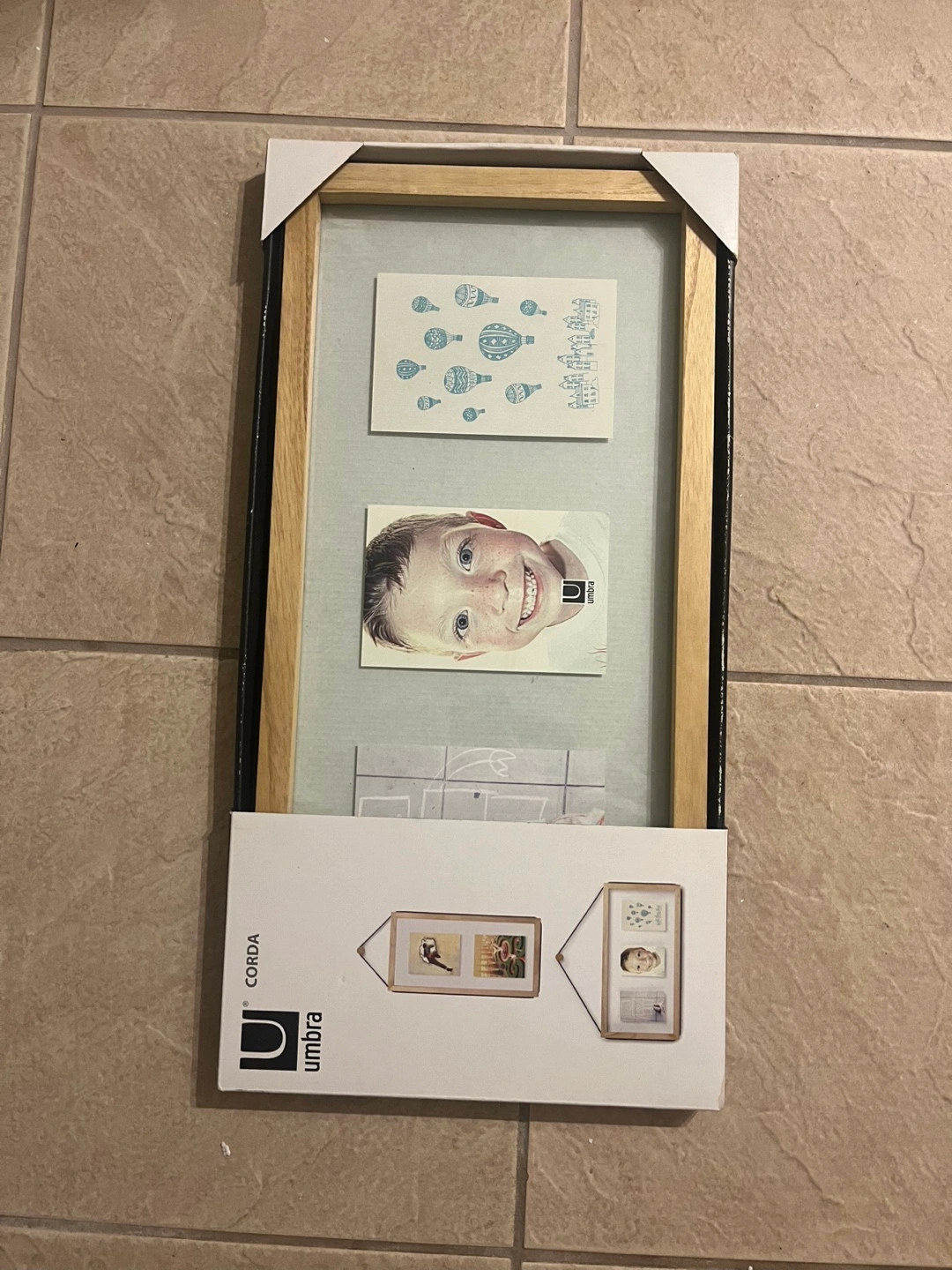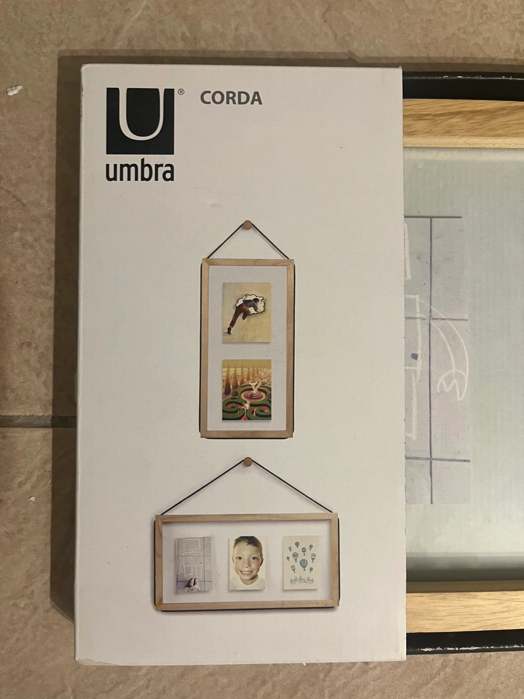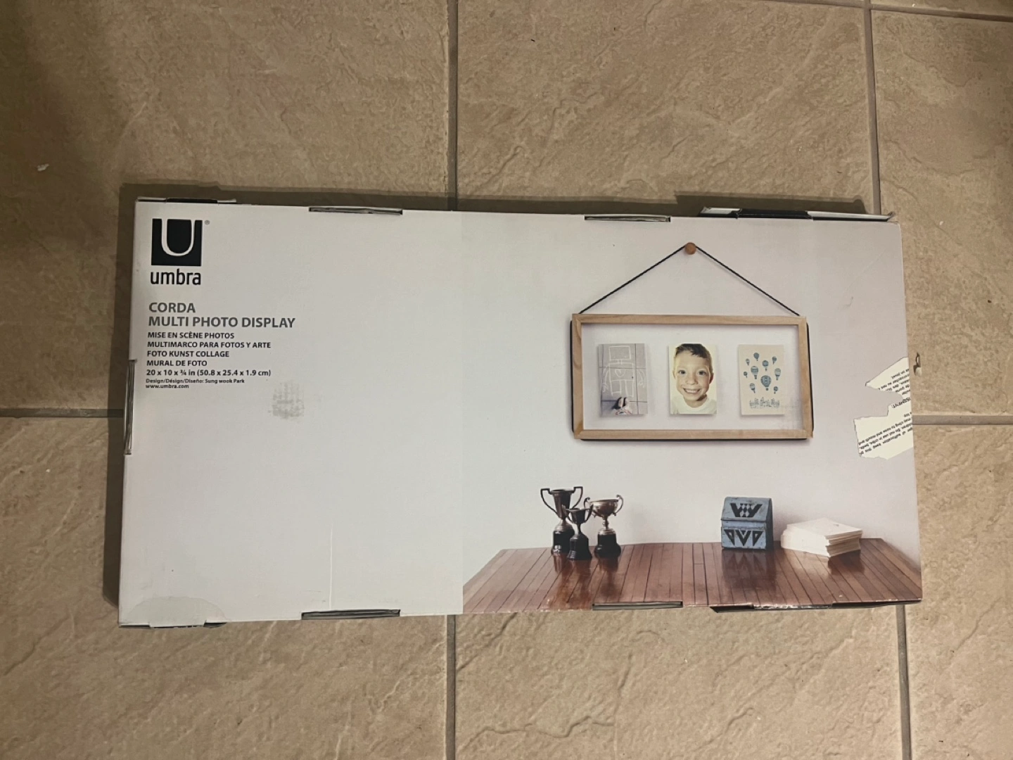 New in box. Wooden frame. Holds multiple photos. Great for displaying cherished memories. Stylish and modern design.