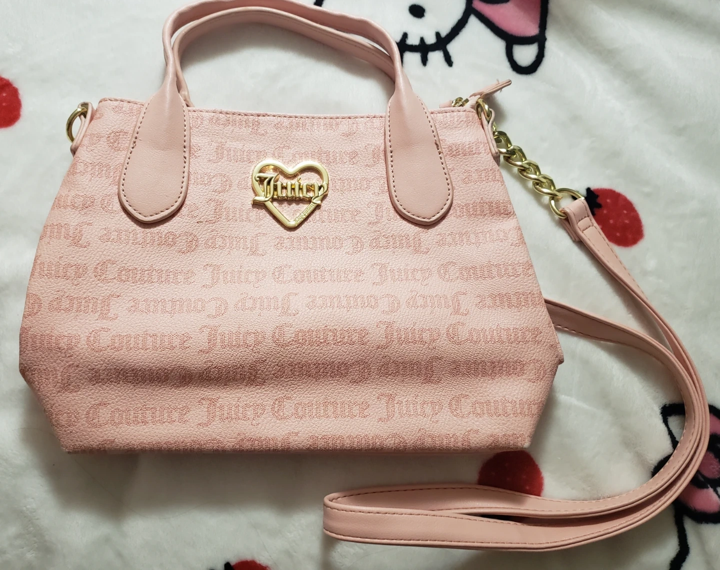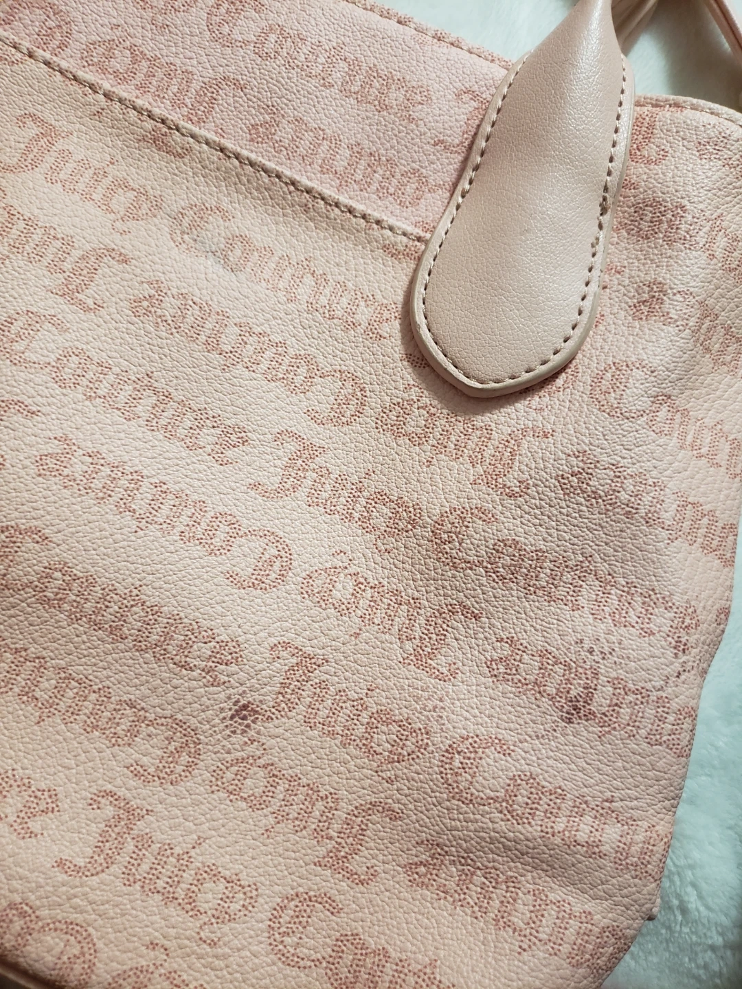 Selling a cute Juicy Couture satchel bag! It's in great shape and features the classic Juicy Couture logo pattern all over. It has like 3 stains in the back but other then that it is in good shape. Perfect for adding a touch of Y2K style to your outfit!