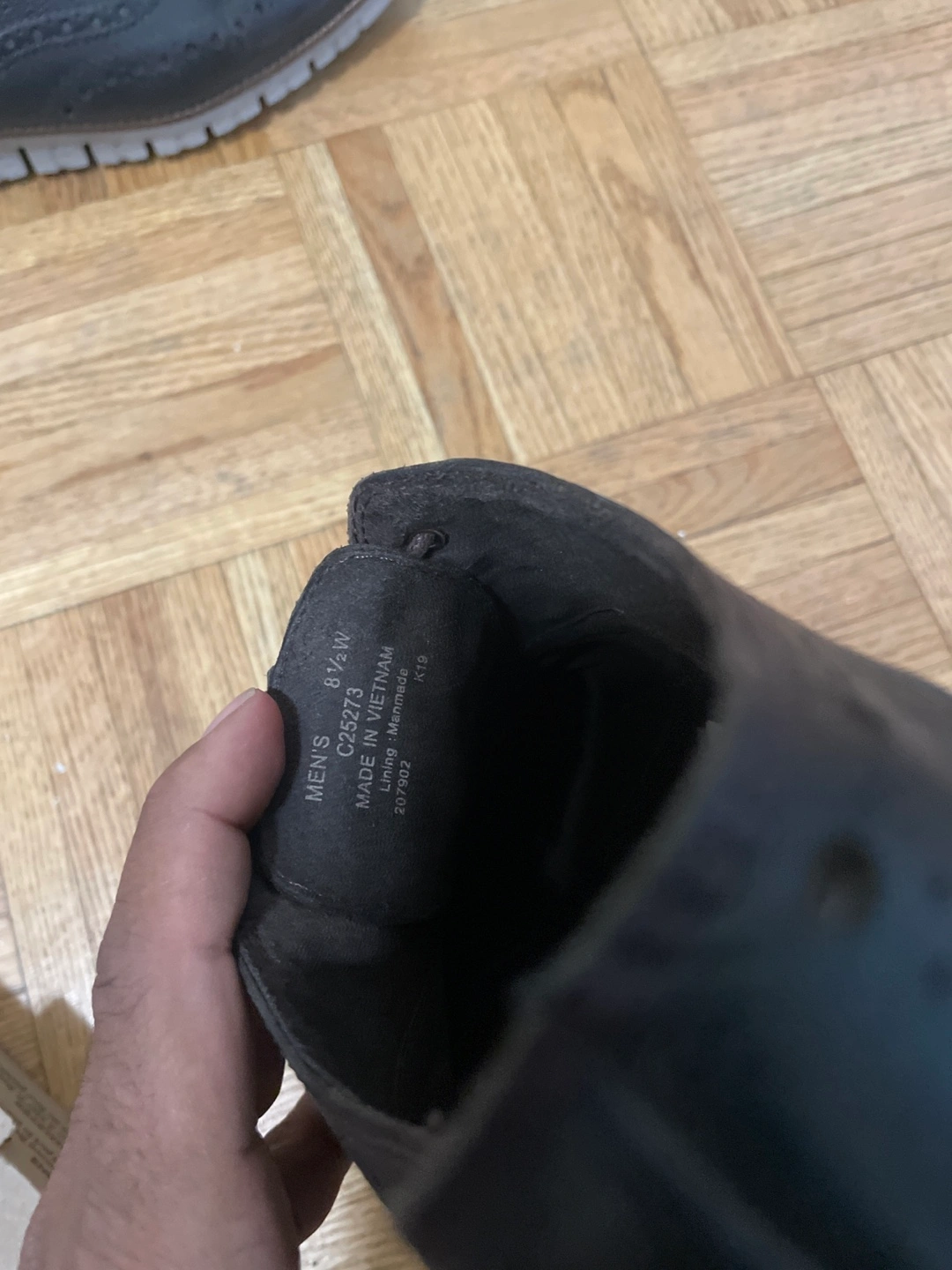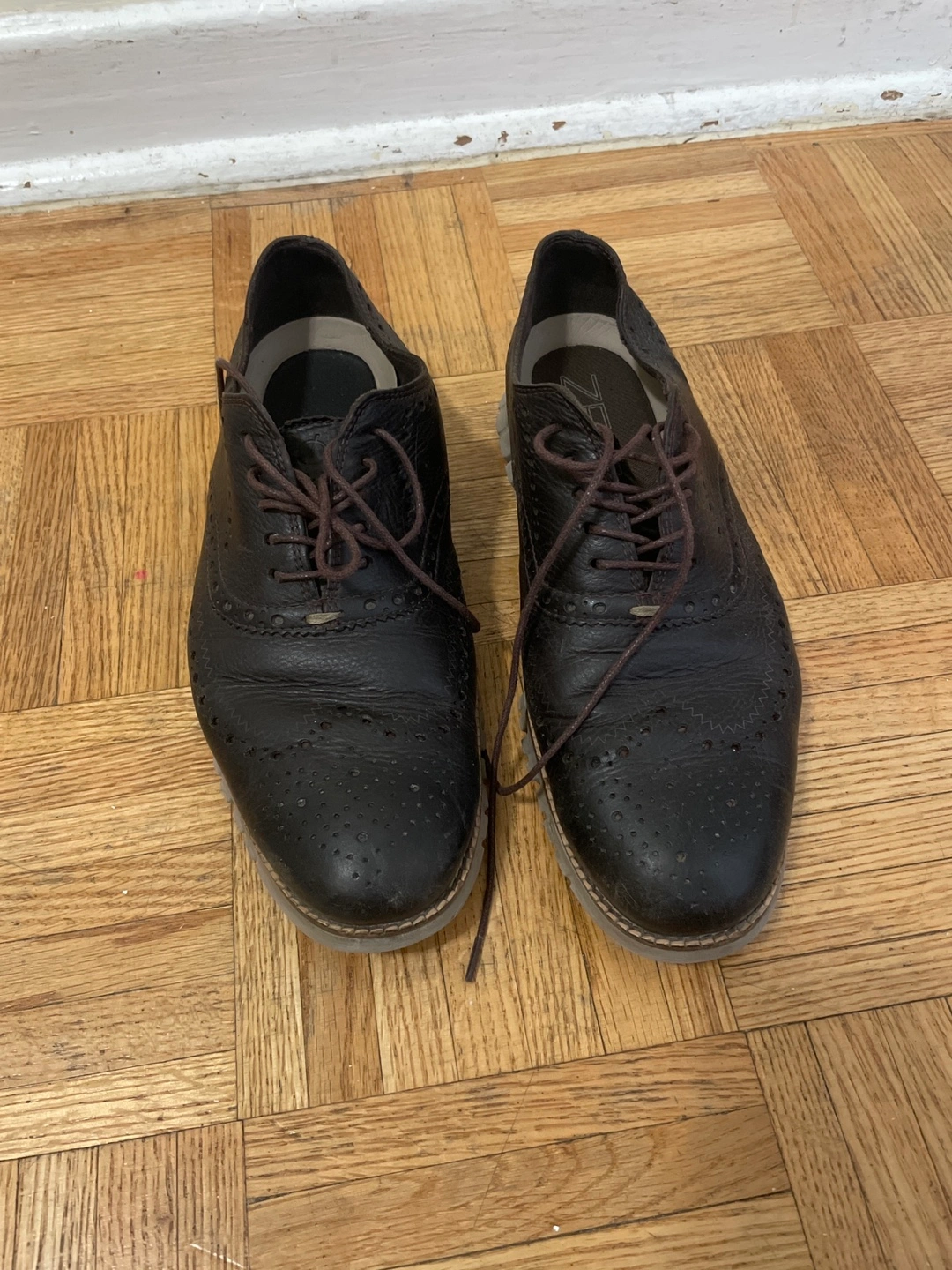 Selling a pair of Cole Haan men's wingtip oxford shoes in size 8.5. They are a classic style with a comfortable sole. There are some signs of wear, but they're still in good condition for everyday wear!