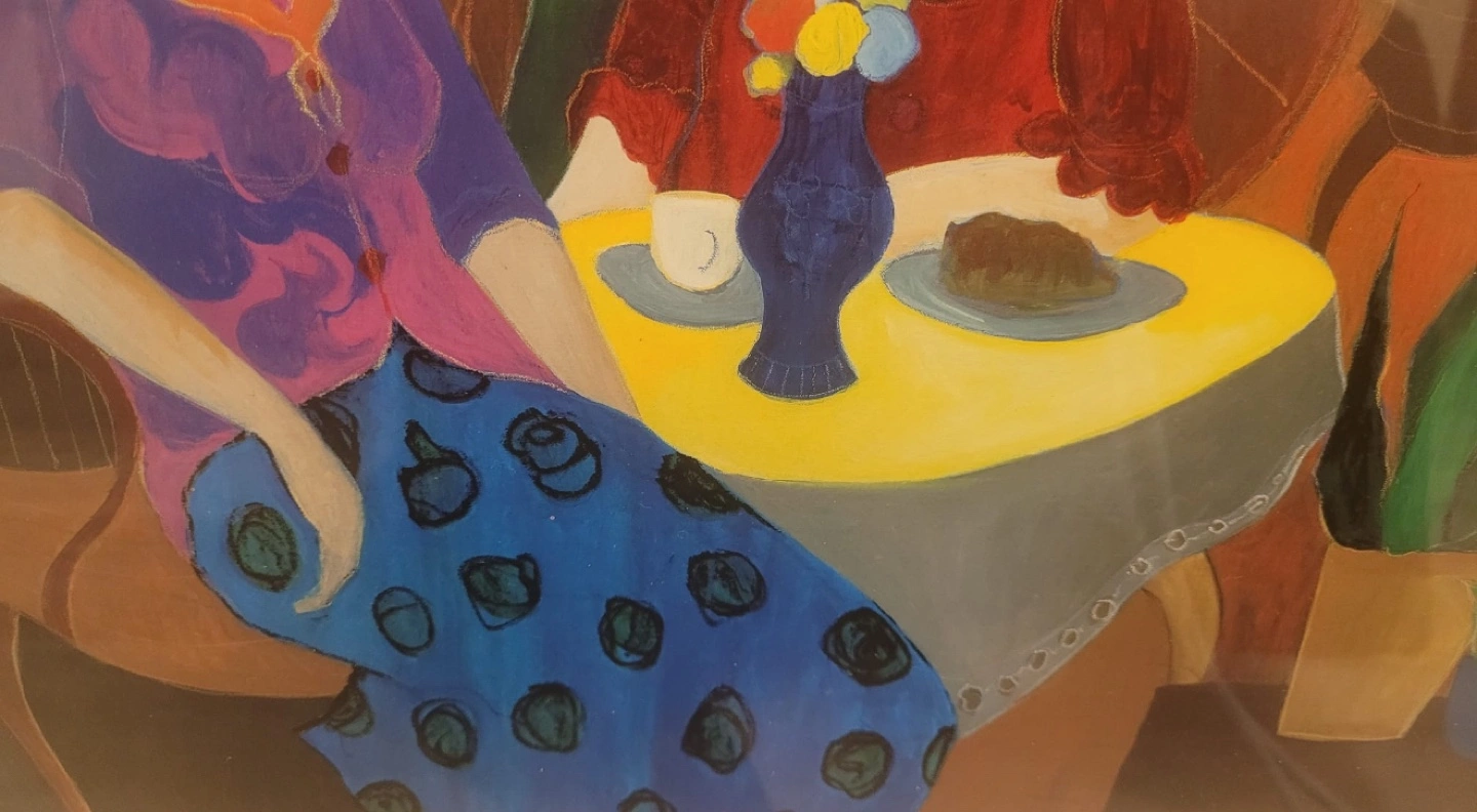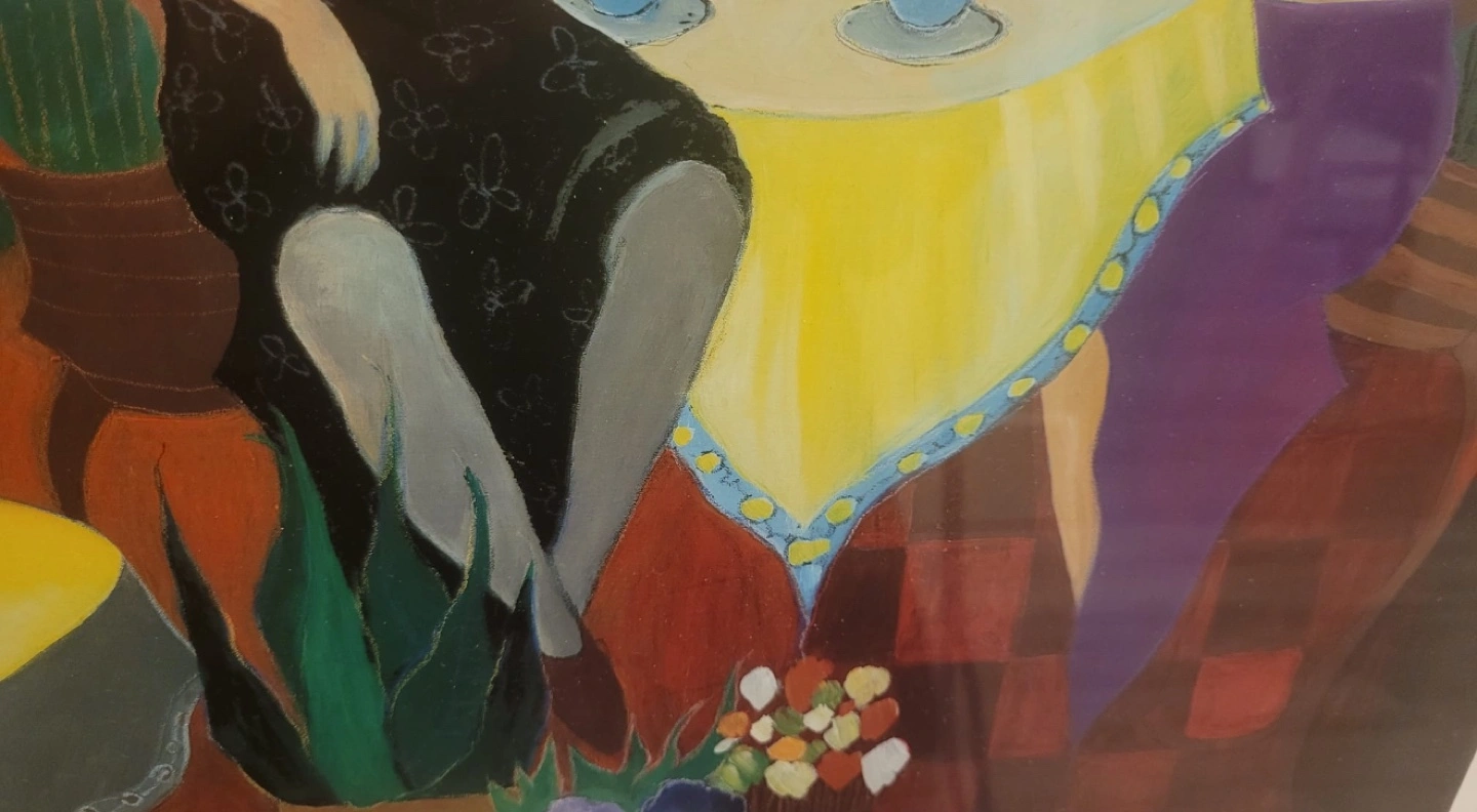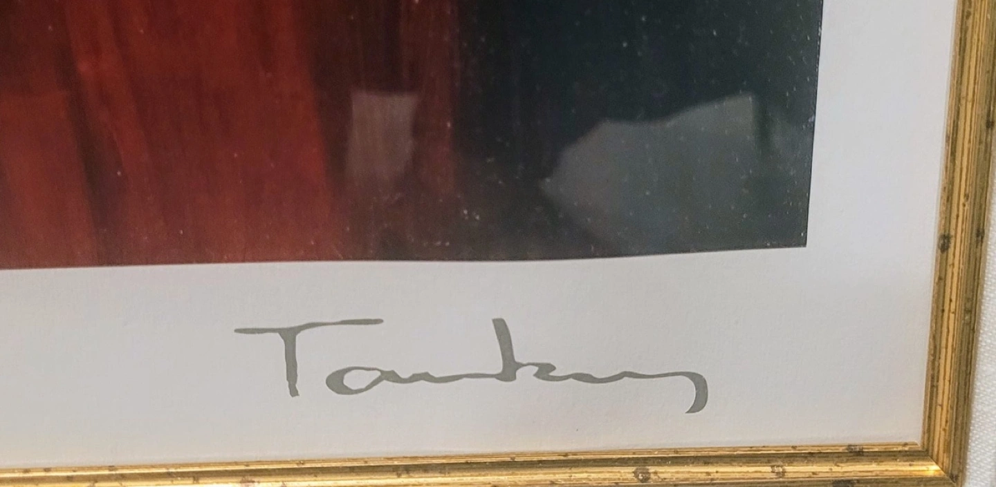 Beautiful framed print by the late Itzchak Tarkay. 24” X 16”. Depicts five ladies enjoying tea outdoors. Vibrant colors and bold lines. Gold coloured wood frame. Excellent condition. Have never been displayed.