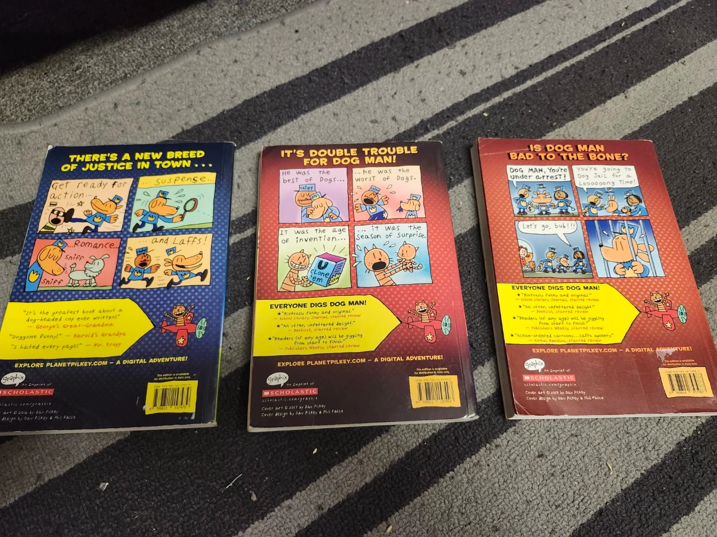 Three Dog Man books by Dav Pilkey are included in this set. They're the first three books in the series. These chapter books are great for young readers.