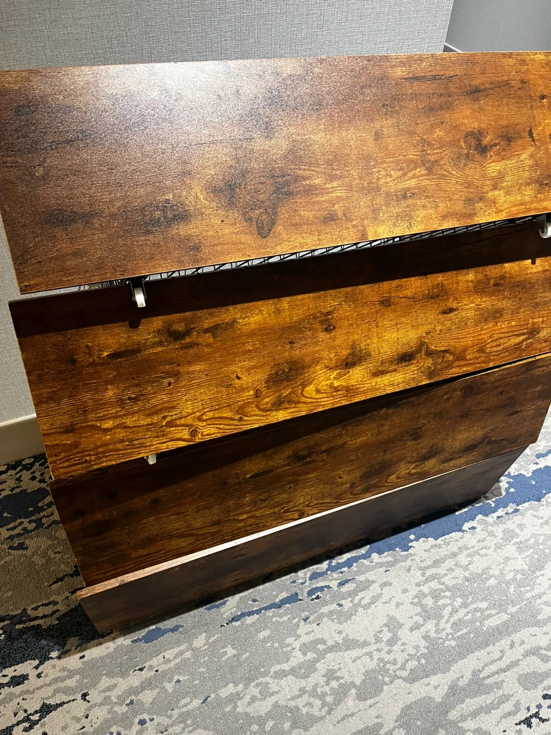 These storage baskets are perfect for adding some extra storage to your home! They feature a wood-look front and a metal basket, and they're in great condition.