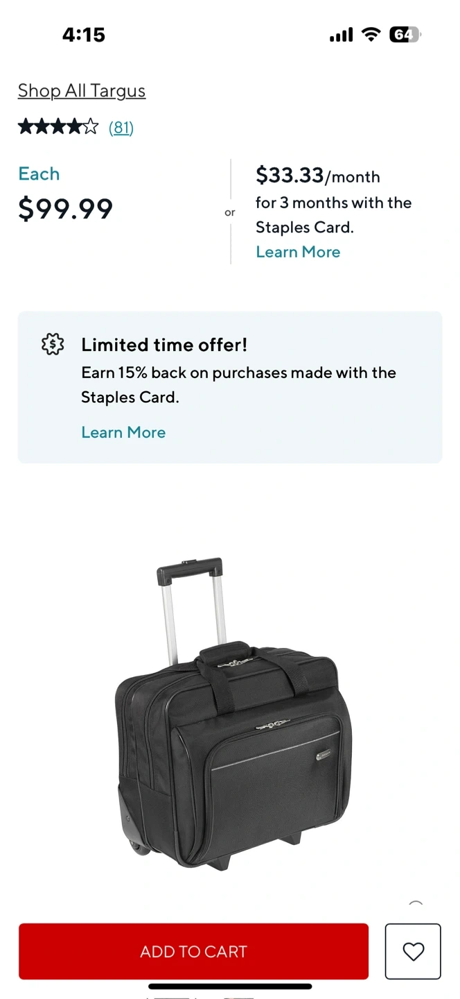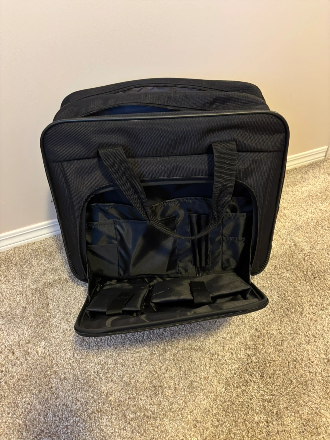 Selling a black Targus rolling bag, perfect for laptops and office essentials! It's in great shape and ready to roll. Originally bought for $99.99!