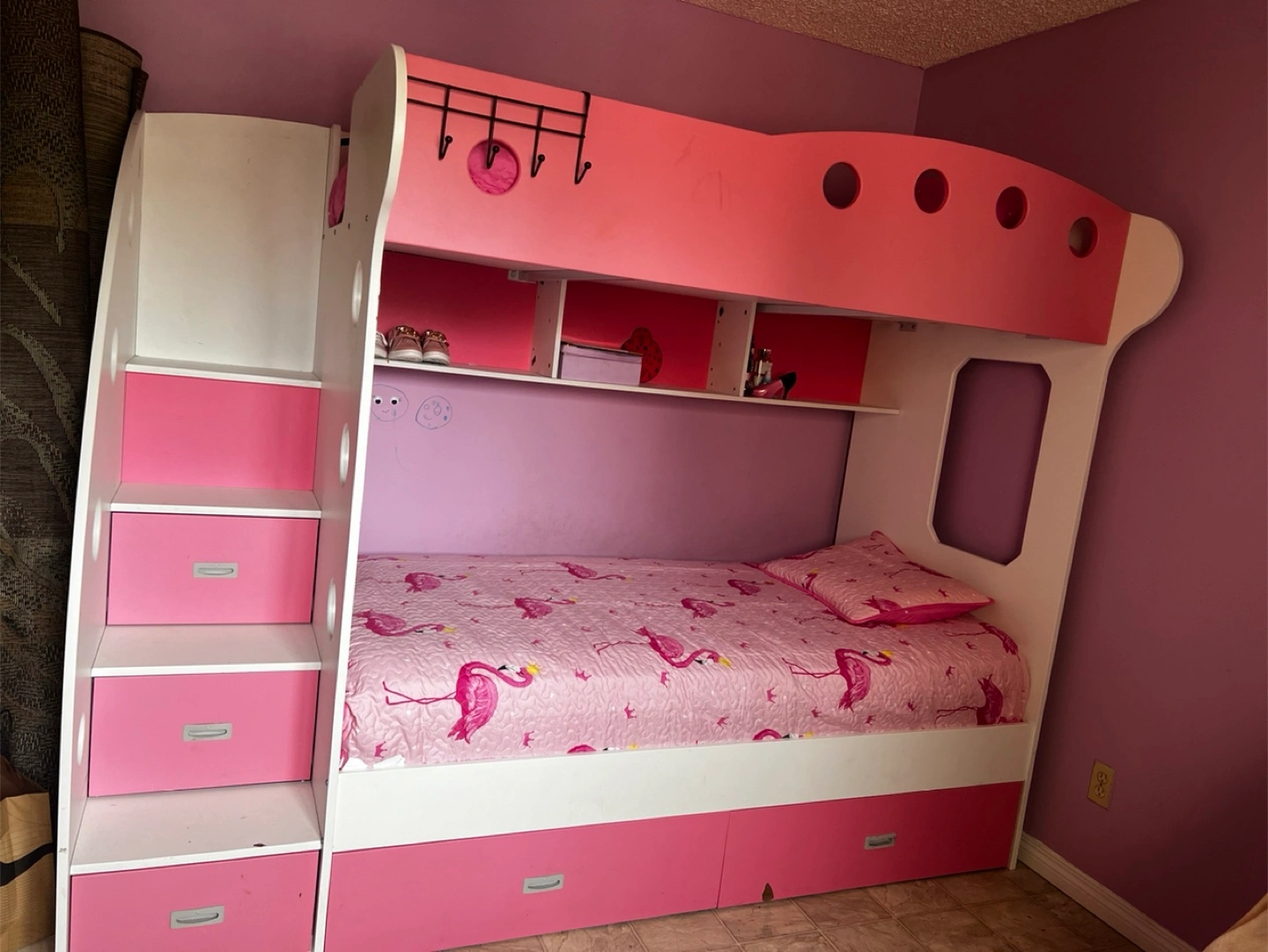 Buy & SellPink Bunk Bed with StoragePink Bunk Bed with Storage$400Adorable pink bunk bed. Features built-in stairs with drawers, open shelving, and under-bed storage. Perfect for a child's room.WHERE TO MEETCallingwoodView MapSELLERNounouCallingwood S343 reviews13 chats·5 favorites·263 viewsSEND CHAT TO SELLERHi Nounou! I’m interested in your listing.Hi Nounou! I’m interested in your listing.Get the Karrot app to chatSign In to chat