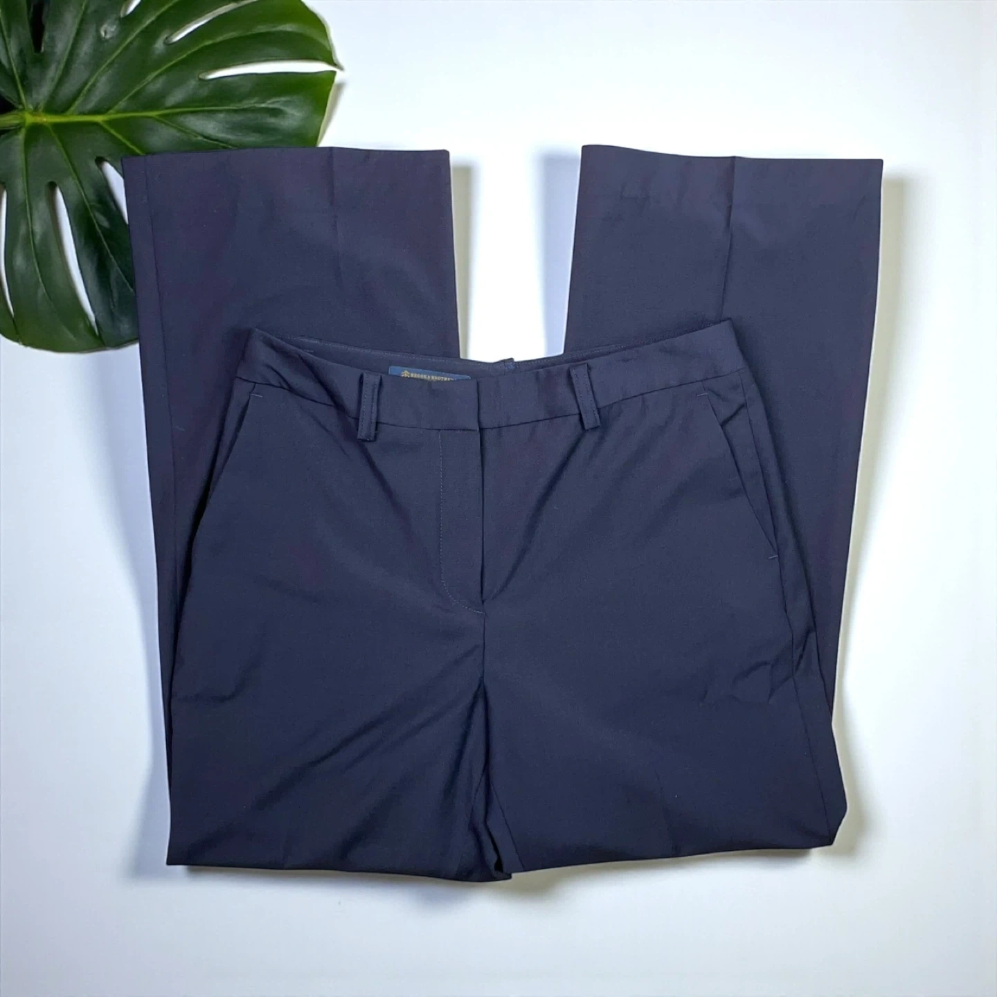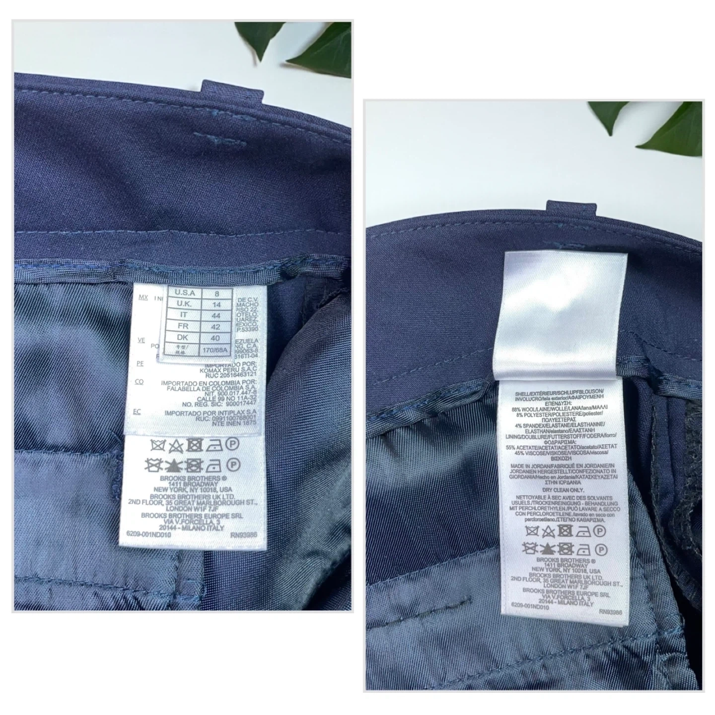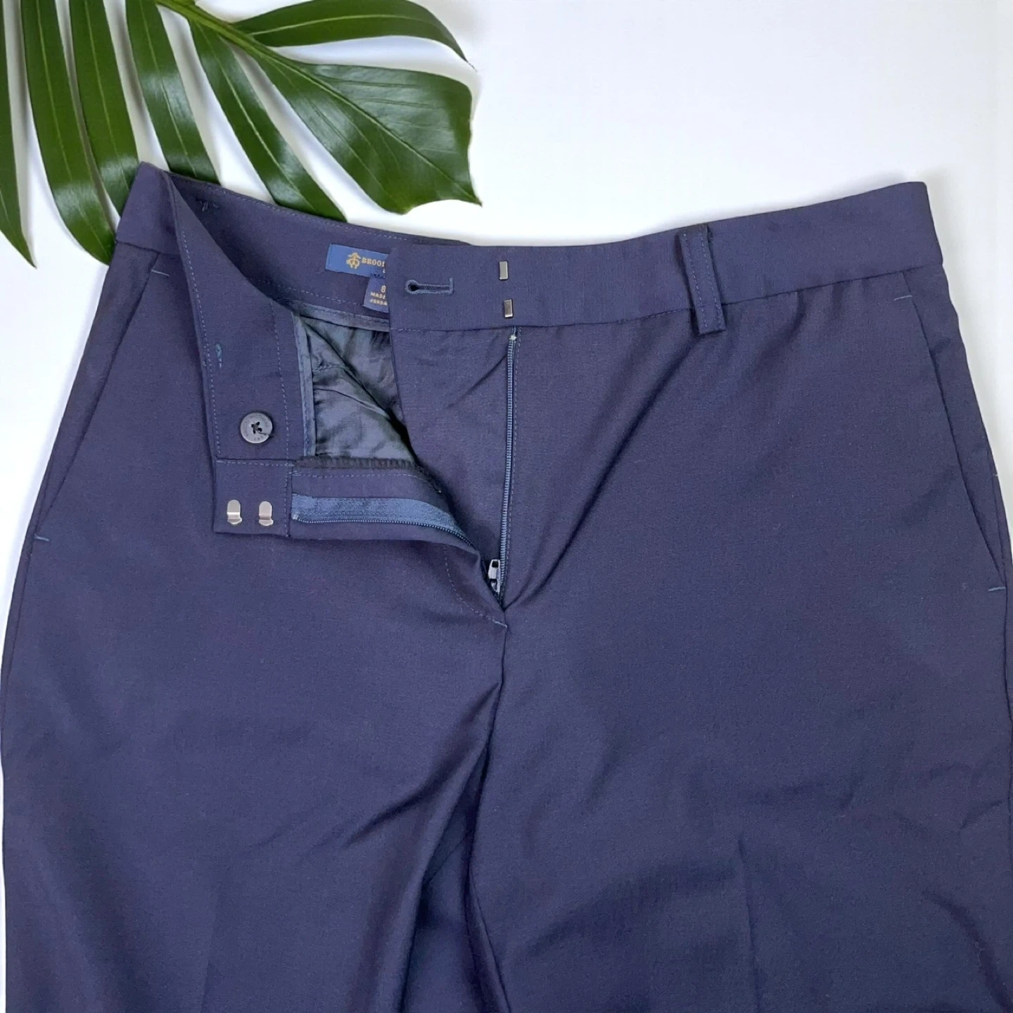 These classic navy trouser pants from Brooks Brothers Explorer Collection combine iconic tailoring and their innovative blend of wool and engineered fibers, resulting in high-tech fabric that is lightweight, wrinkle resistant and water repellent, perfect for work or travel.