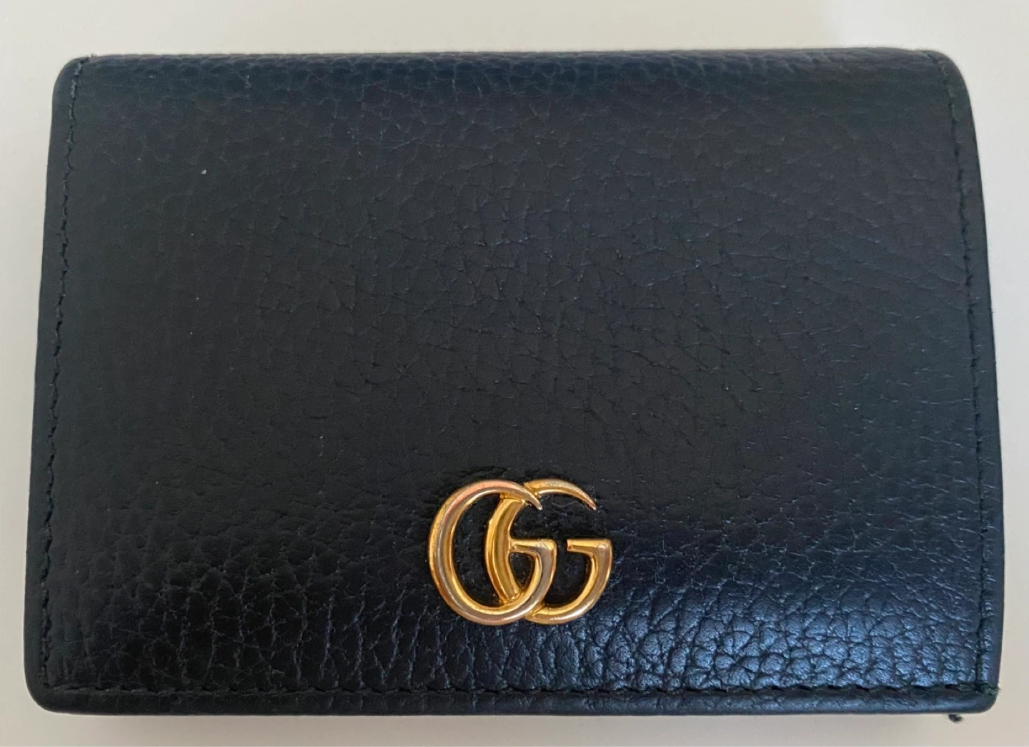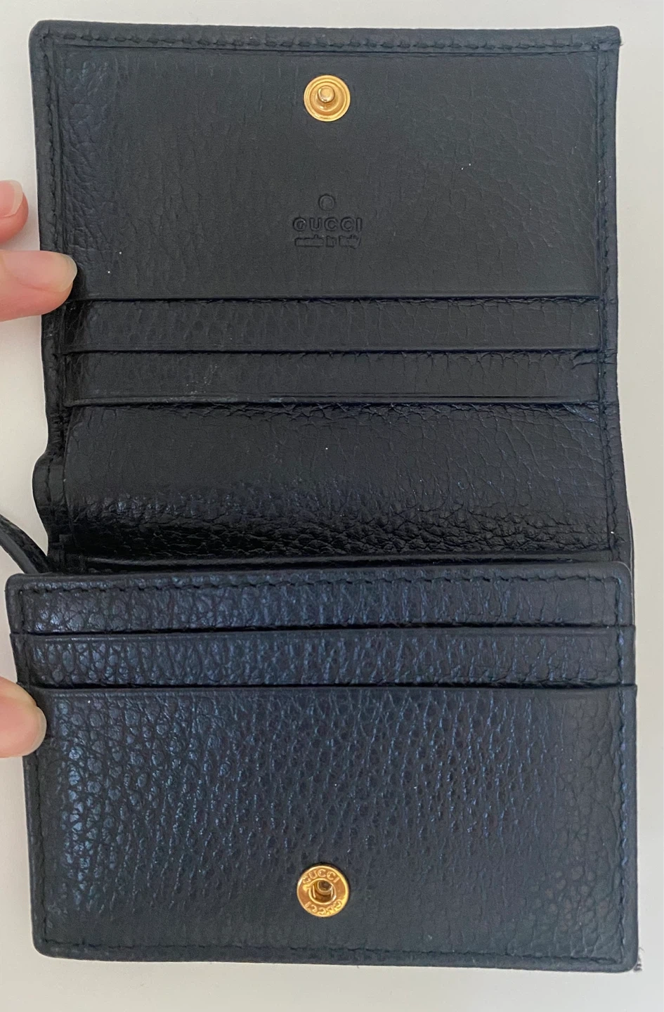 Authentic Gucci card case wallet in black pebbled leather. Features the iconic GG logo hardware. Plenty of card slots for organization. Made in Italy.