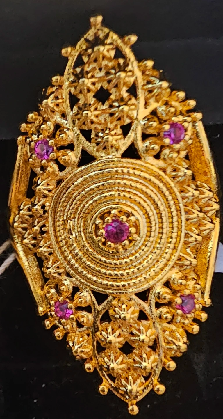 Beautiful selection of 24 karat gold rings featuring various designs. Includes floral patterns, chain links, and intricate filigree work. Perfect for adding a touch of elegance to any outfit! $15 to $20
