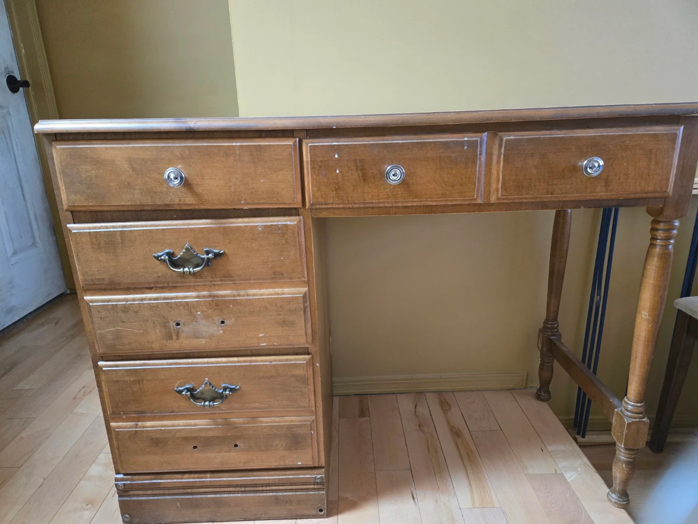Buy & SellWooden Desk with 4 DrawersWooden Desk with 4 Drawers$40This desk needs some T.L.C but is a good and solid. WHERE TO MEETCheck LocationView MapSELLERHeatherHarvest Hills736 reviews1 chats·4 favorites·43 viewsSEND CHAT TO SELLERHi Heather! I’m interested in your listing.Hi Heather! I’m interested in your listing.Get the Karrot app to chatSign In to chat