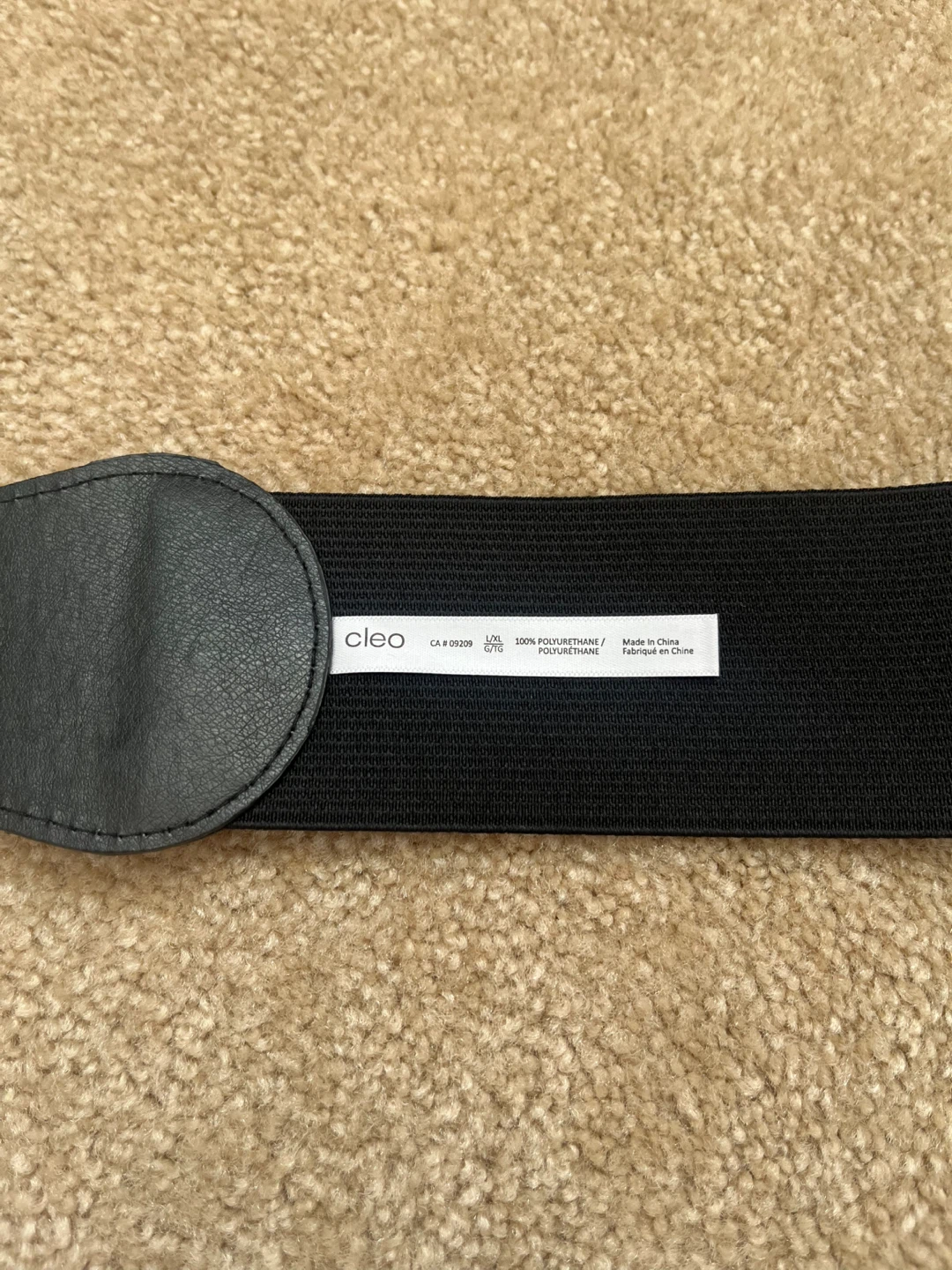 This black elastic belt from Cleo features a faux crocodile print buckle. It's made with 100% polyurethane and elastic for a comfortable fit. This belt adds a stylish touch to dresses or tunics.
