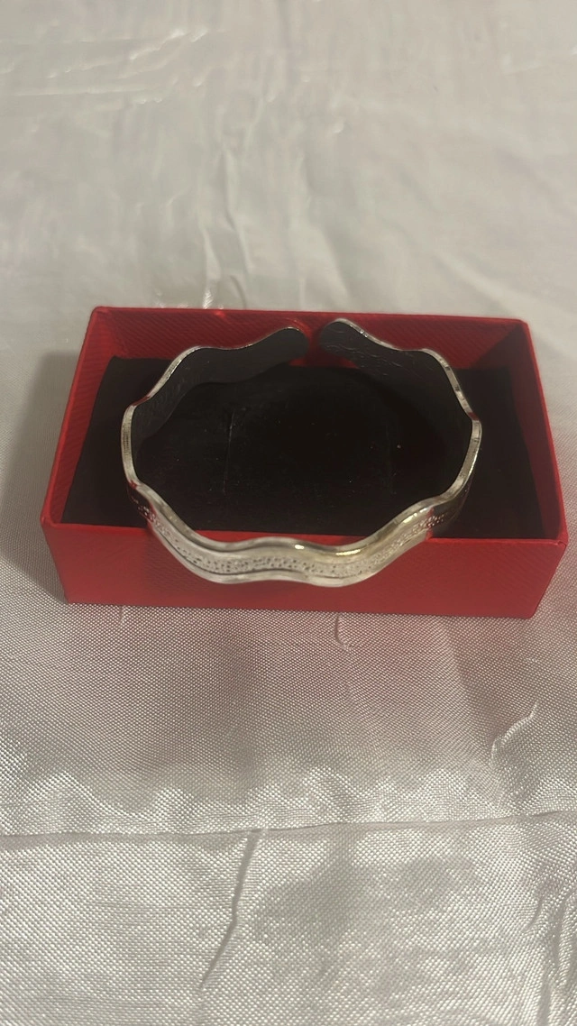 This bangle is a stylish, silver-plated accessory that adds a touch of elegance to any outfit. The bangle is brand new, showcasing a unique wave design.
