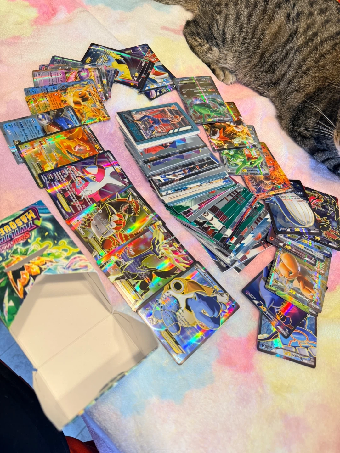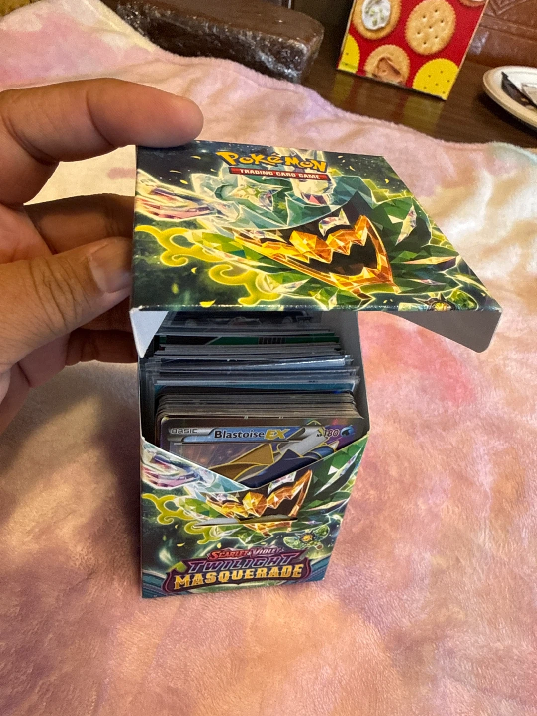 A collection of Pokemon trading cards, including various Pokemon and some EX cards. The collection comes in a "Sword & Shield - Chilling Reign" themed box. Great for collectors and players alike!
