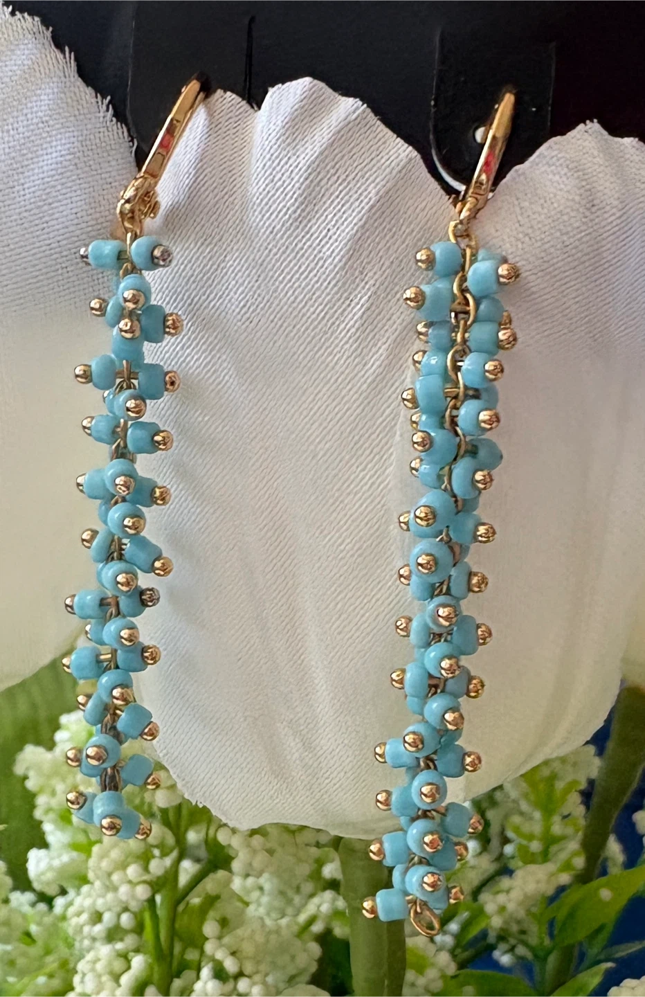 Beautiful Beaded Dangle Earrings - Turquoise & Gold