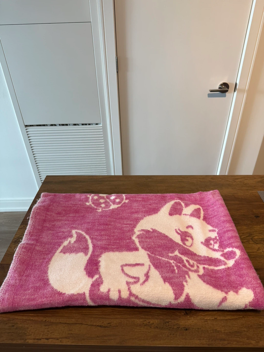 Selling a cute pink blanket with a fox design! It’s soft and perfect for adding a touch of whimsy to any room. The blanket features a playful fox and ladybug pattern. It is in great condition and ready for a new home