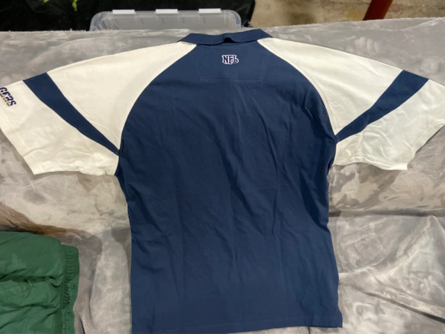 This is an NFL Los Angeles Chargers polo shirt. It's a size XL with the team name embroidered on the sleeve. The shirt is navy blue with white sleeves. Asking 15 new with no tags