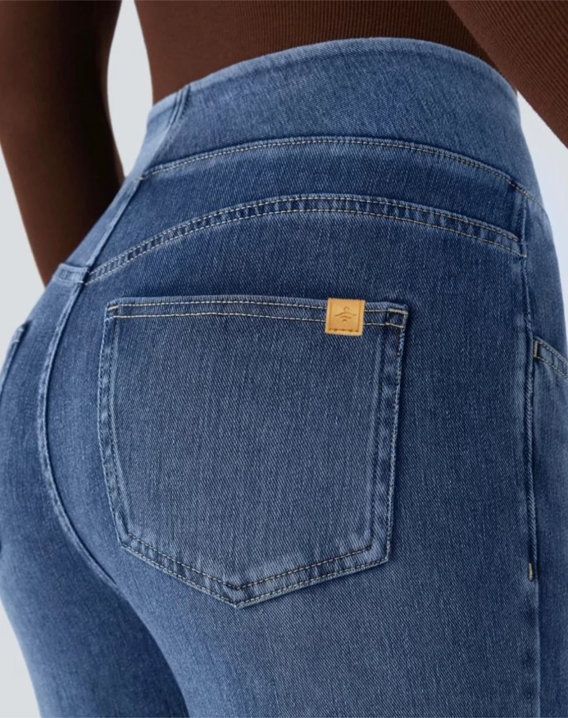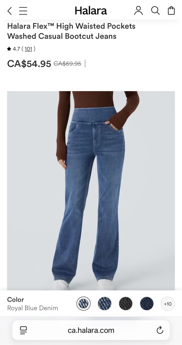 These are Halara Flex high waisted bootcut jeans in Royal Blue Denim.