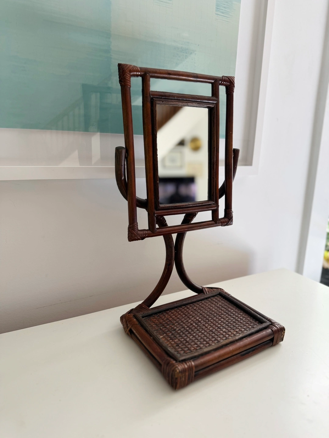 Vintage Rattan Swivel Mirror | Boho Wicker Vanity Tabletop Decor