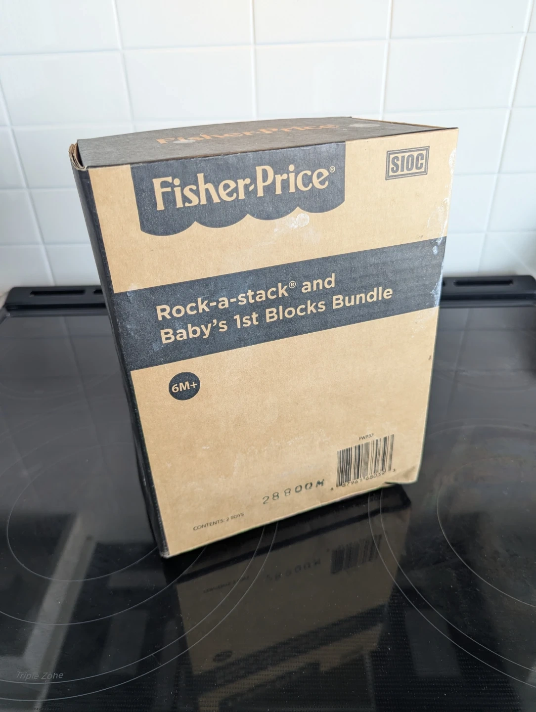 This is a Fisher-Price bundle including the Rock-a-stack and Baby's 1st Blocks. It's suitable for ages 6 months and up. Contents: 2 toys.