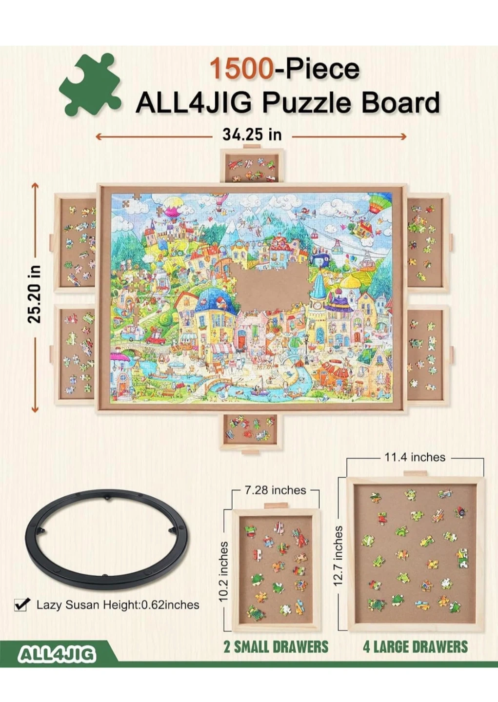 ALL4JIG Wooden Jigsaw Puzzle Board with 6 Drawers RP15