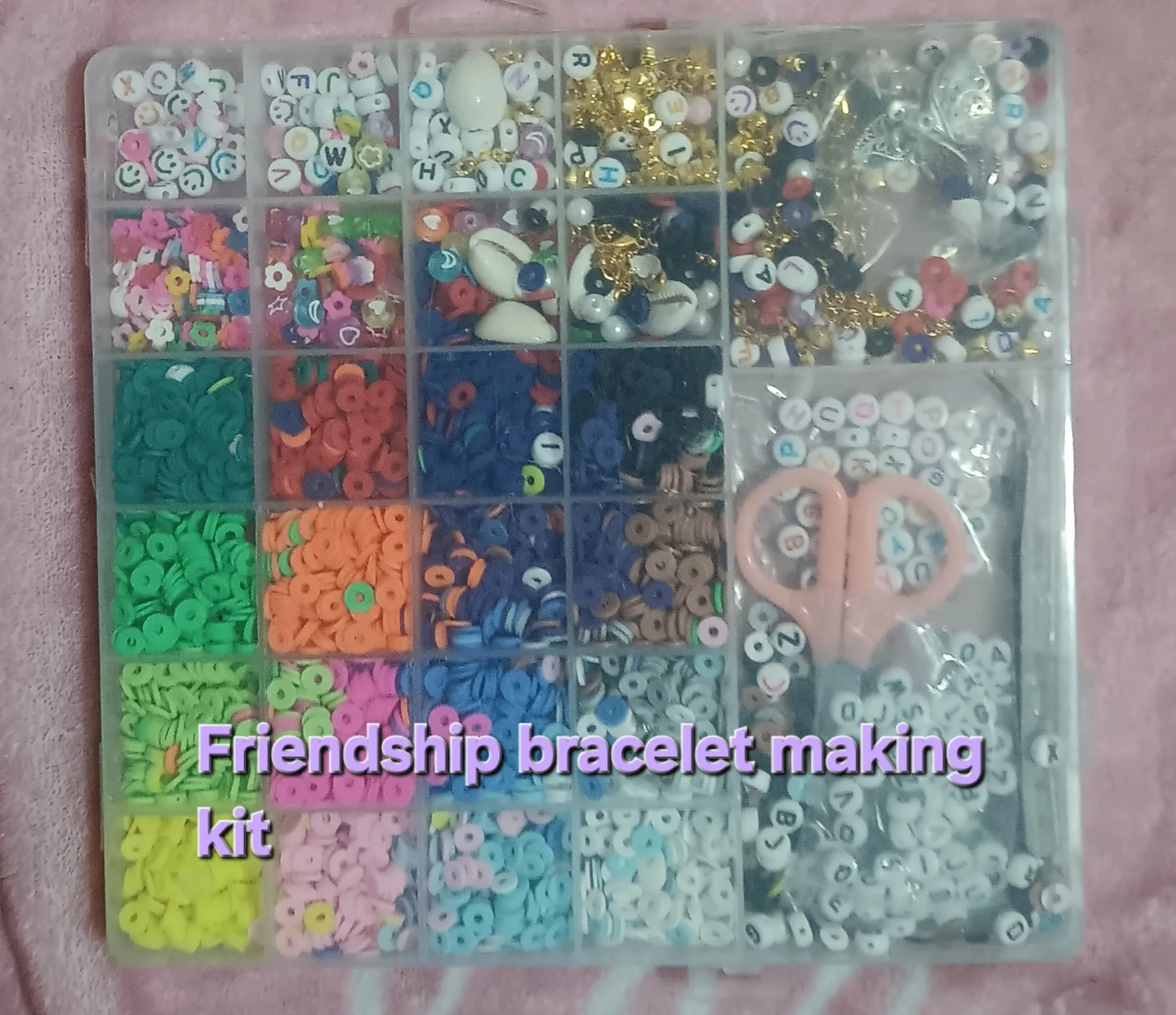 This kit includes hundreds of colorful beads, letter beads, shell beads, gold accent beads, and specialized pink scissors! Perfect for concerts, DIY jewelry projects, gifts and crafting fun! Organized and ready to go. Cash only please :)