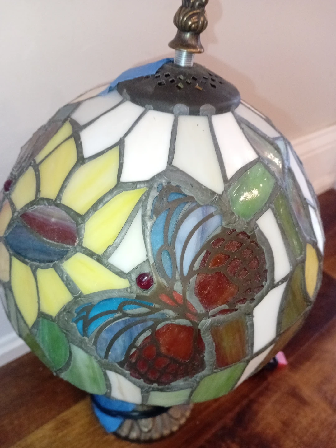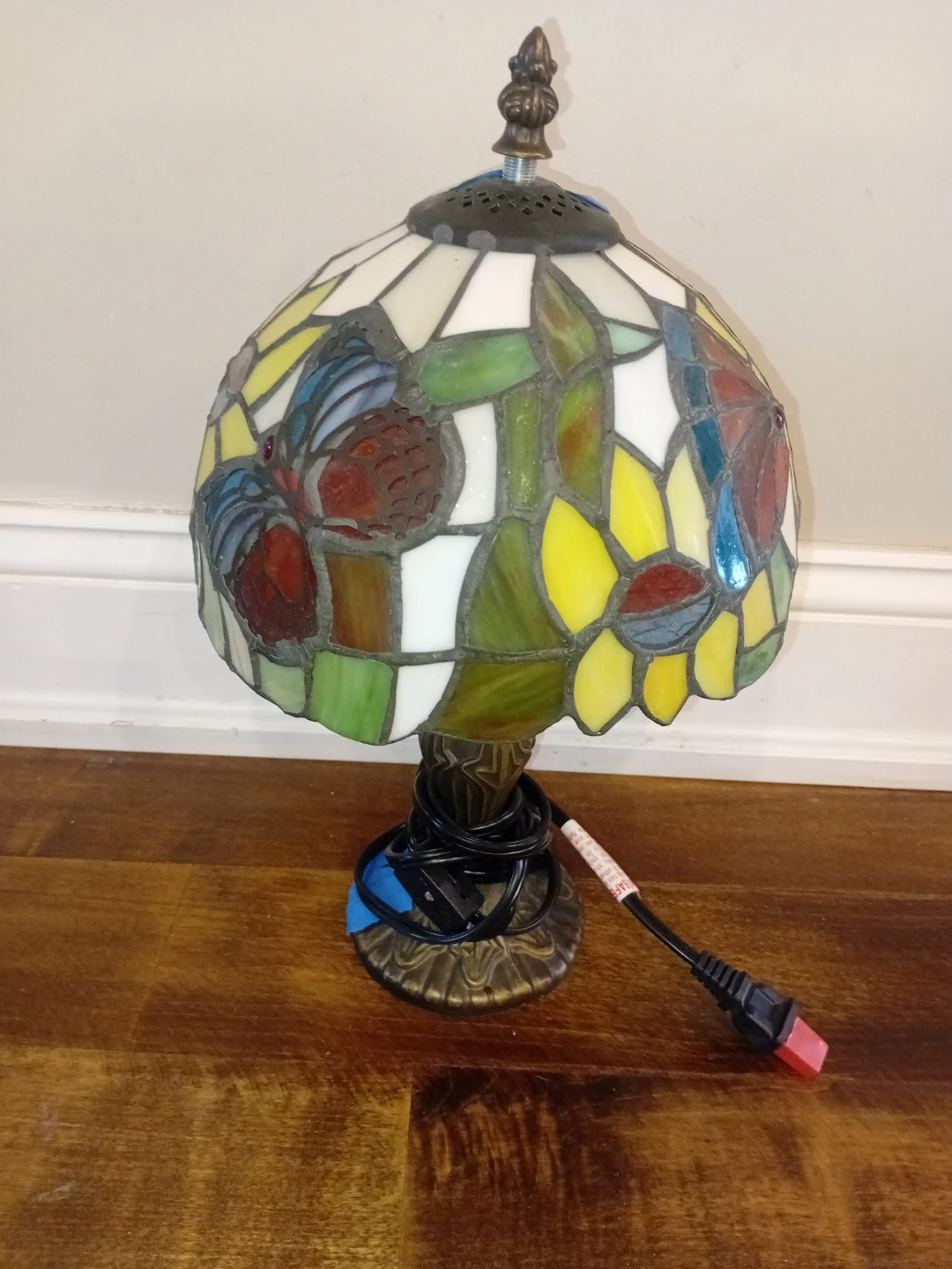 2 stained glass table lamps features a colourful butterfly and sunflower design. It's crafted with a metal base and stained glass shade. Willing to negotiate. price lusted is for one