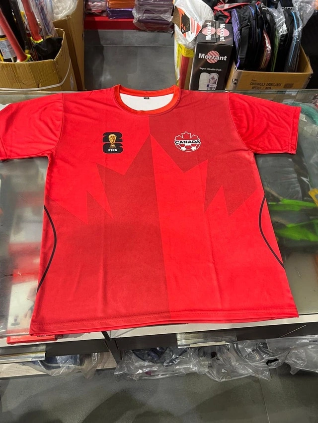 Show your support for Team Canada with this vibrant red FIFA World Cup 2026 T-shirt, featuring the Canadian logo and the FIFA emblem. This shirt is in used, good condition and has been gently worn. Perfect for any soccer fan! Colour: Red. Design: FIFA World Cup 2026 and Canadian logos. Condition: Used - Good. Size: Medium. Payment accepted: Cash, Cashless payment.