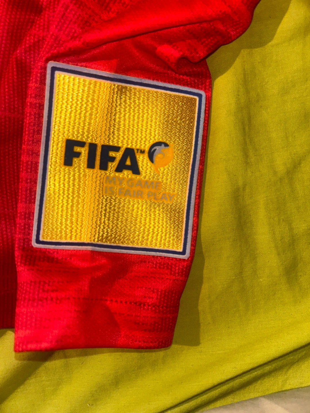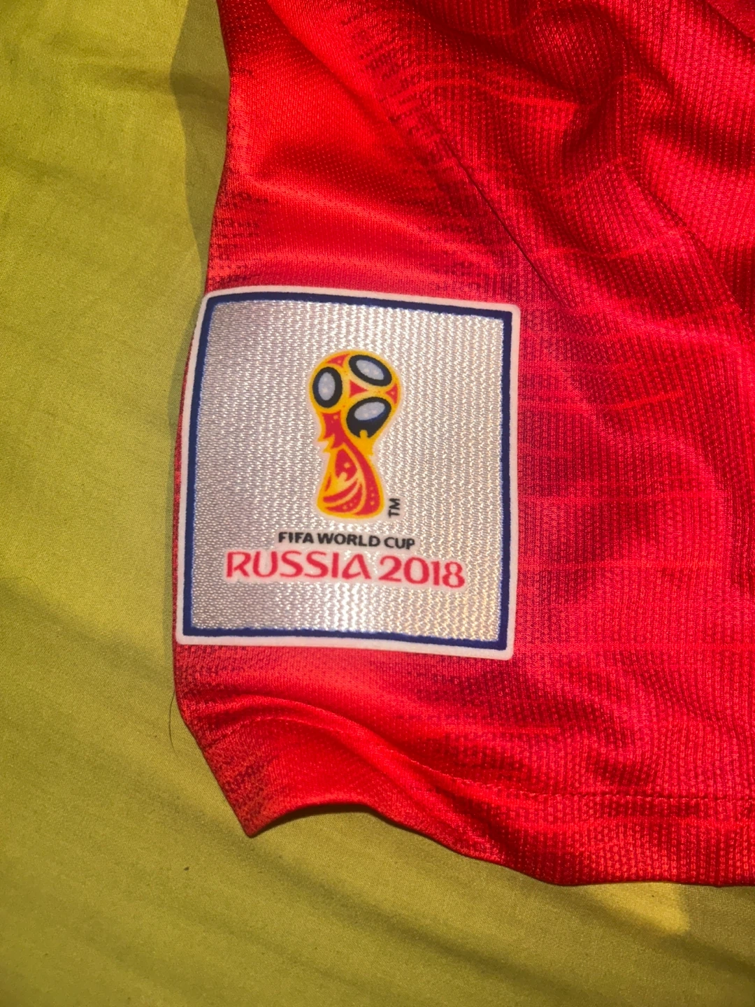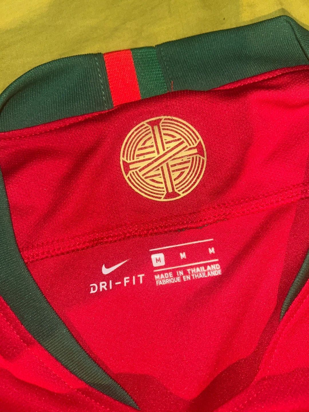 Red Nike Portugal soccer jersey with FIFA World Cup Russia 2018 patch. It's a size medium. Made with Dri-FIT material.