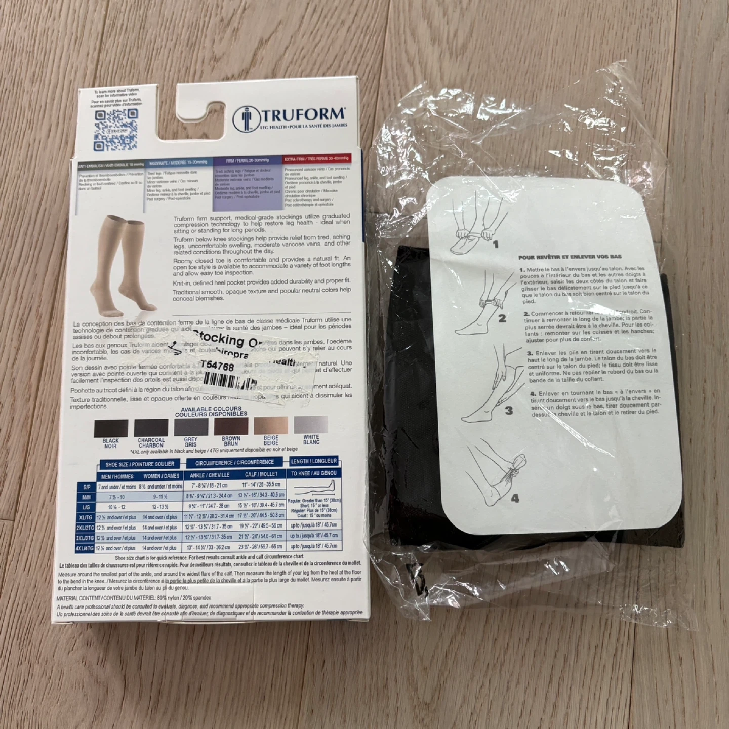Truform medical compression stockings in black, size small, short style. These graduated compression stockings help relieve moderate varicose veins & swelling. Open box only, never worn, so labelled as “like new”.