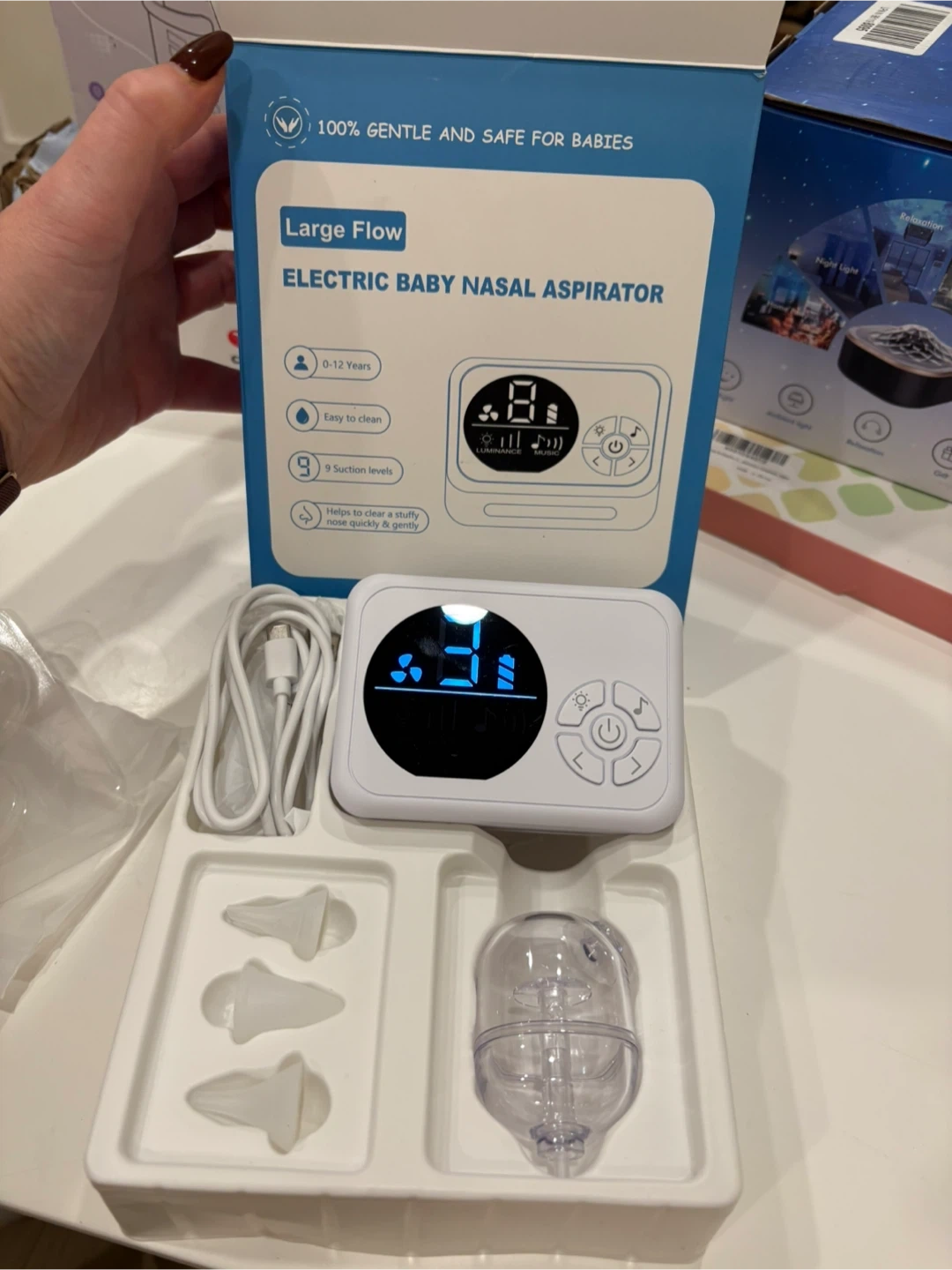 New Nasal Aspirator for Baby Electric Nose Suction 9 Levels Suction Night Light and Nursery Rhyme Soothing Function (White, Small)